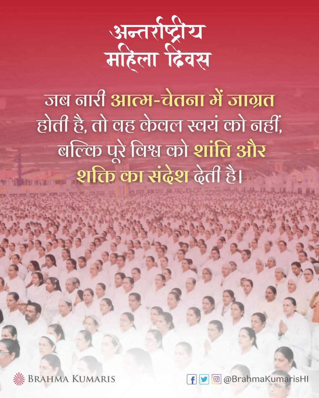 अंतर्राष्ट्रीय महिला दिवस की हार्दिक शुभकामनाएँ — हर नारी अपनी आध्यात्मिक शक्ति को पहचानकर विश्व के लिए प्रेरणा बने। 🌸✨