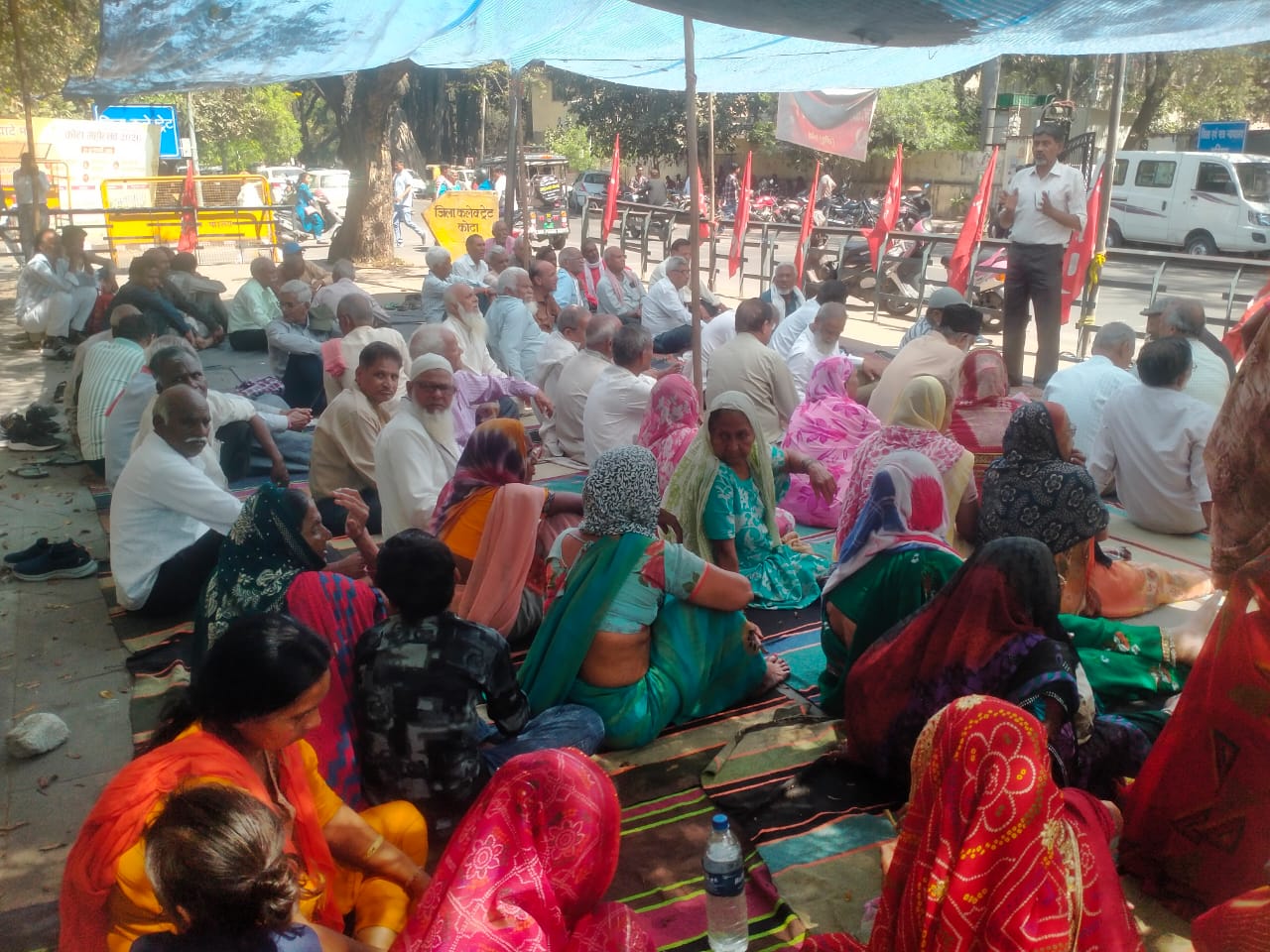 जिला कलेक्ट्रेट गेट पर चल रहे धरने में कामरेड कालीचरण सोनी कामरेड केदार जोशी कामरेड अली मोहम्मद कामरेड महावीर प्रसाद कामरेड गोपाल शर्मा कामरेड सतीश चंद त्रिवेदी कामरेड हनुमान सिंह कामरेड मलखान सिंह यादव कामरेड लक्ष्मीकांत वाजपेई, जेठाराम महिला मजदूर नेता कामरेड निर्मला बाई रहीसा बानो रेशमा देवी कैलाशी बाई राजकुमारी राजू वर्मा जाहिदा बानो सहित सैकड़ों मजदूर महिलाए और जे के मजदूरों के परिजन बच्चे बुजुर्ग मौजूद रहे।