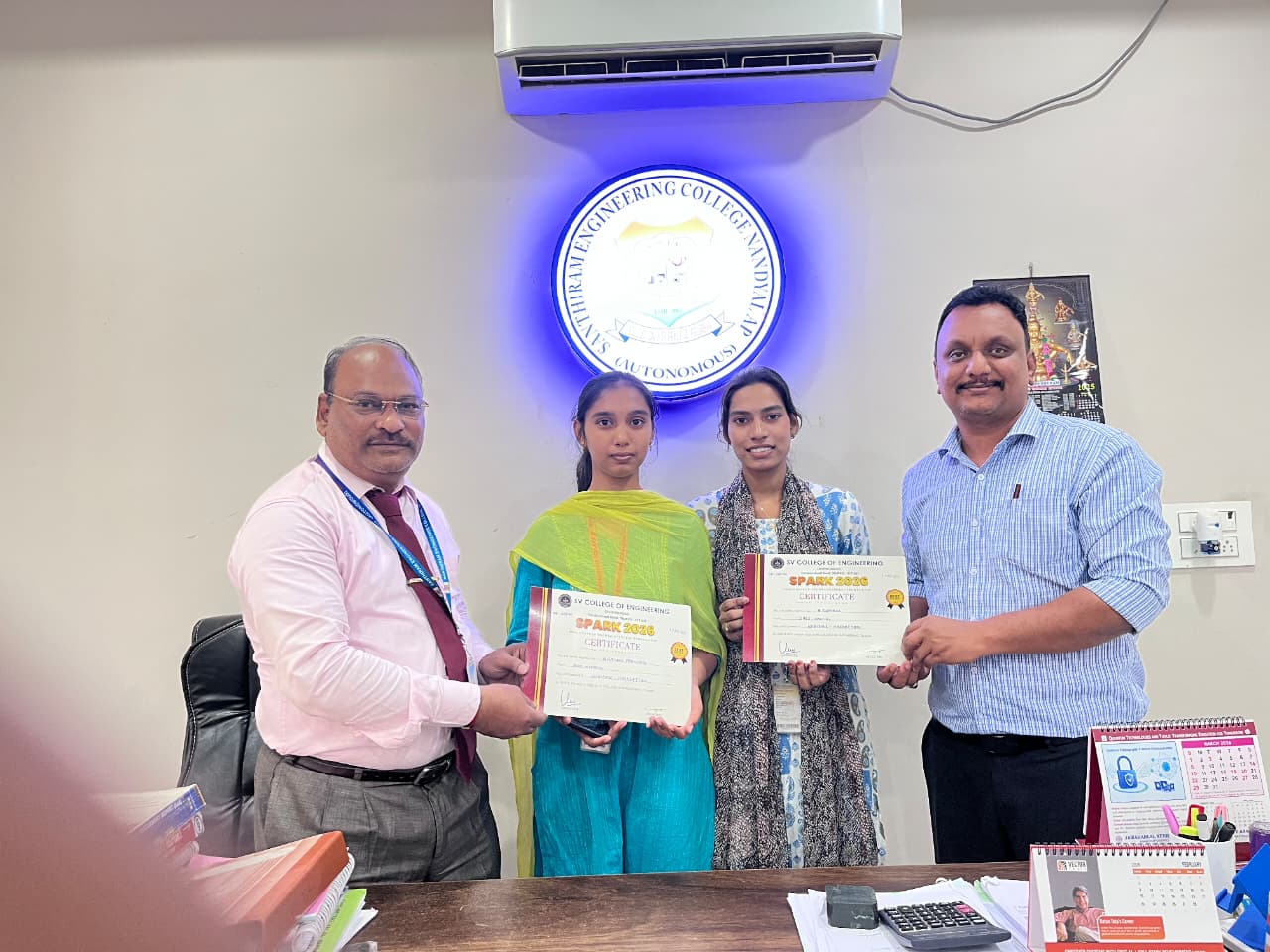 నంద్యాల (AIMA MEDIA ): నంద్యాలకు చెందిన శాంతిరాం ఇంజినీరింగ్ కళాశాల (స్వయం ప్రతిపత్తి) సి.ఎస్.ఈ విభాగం మూడవ సంవత్సరం విద్యార్థినులు బి. సుప్రజా మరియు బి. అంజని ప్రణీత ఇటీవల నిర్వహించిన వెబ్‌వర్స్ హ్యాకథాన్ పోటీలో ప్రతిభ కనబరిచి ప్రథమ బహుమతిని సాధించారు. హ్యాకథాన్ పోటీలలో సృజనాత్మక ఆలోచనలు, సాంకేతిక నైపుణ్యాలతో విశిష్ట ప్రదర్శన ఇచ్చి విజేతలుగా నిలిచి కళాశాలకి కీర్తి తీసుకువచ్చారు.తిరుపతిలోని శ్రీ వెంకటేశ్వర ఇంజినీరింగ్ కాలేజ్ ఆధ్వర్యంలో 07-09 తేదీలలో నిర్వహించిన జాతీయ స్థాయి సాంకేతిక సదస్సు “స్పార్క్ -2K26 లో పాల్గొన్న విద్యార్థులకు నిర్వాహకులు వెబవర్స్ హ్యాకేతోన్ లో భాగంగా రిసార్ట్స్‌కు సంబంధించిన ఒక ప్రాబ్లమ్ స్టేట్మెంట్ ఇవ్వడంతో పాటు మూడు టెస్ట్ కేసులను అందించారు. విద్యార్థులు ఆ సమస్యకు సమర్థవంతమైన సాంకేతిక పరిష్కారం రూపొందించి, జడ్జీలను ఆకట్టుకున్నారు.పోటీలో పాల్గొన్న అనేక జట్ల మధ్య కఠినమైన పోటీ జరిగినప్పటికీ, విద్యార్థుల బృందం తమ సృజనాత్మక ఆలోచనలు, సాంకేతిక నైపుణ్యం మరియు టీమ్‌వర్క్ ద్వారా అద్భుతమైన ప్రాజెక్టును రూపొందించి ప్రథమ బహుమతిని గెలుచుకున్నారు.ఈ సందర్భంగా కళాశాల ప్రిన్సిపాల్ డా. ఎం.వి. సుబ్రహ్మణ్యం మాట్లాడుతూ, విద్యార్థులు జాతీయ వేదికపై విజయం సాధించడం గర్వకారణమని తెలిపారు. విభాగాధిపతి డా. ఏం.డి. ఫరూఖ్ విజేతలను అభినందిస్తూ, భవిష్యత్తులో మరిన్ని సాంకేతిక పోటీల్లో పాల్గొని విజయాలు సాధించాలని ఆకాంక్షించారు.
