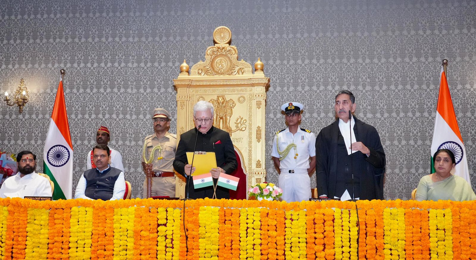 🔸मुख्यमंत्री देवेंद्र फडणवीस यांनी आज लोकभवन, मुंबई येथे मा. जिष्णू देव वर्मा यांचा महाराष्ट्राचे राज्यपाल पदाचा शपथविधी समारंभ येथे प्रमुख उपस्थिती दर्शविली. यावेळी मुंबई उच्च न्यायालयाचे मा. मुख्य न्यायमूर्ती श्री चंद्रशेखर यांनी त्यांना पदाची शपथ दिली. याप्रसंगी मा. राज्यपाल यांना 'गार्ड ऑफ ऑनर' प्रदान करण्यात आला.
