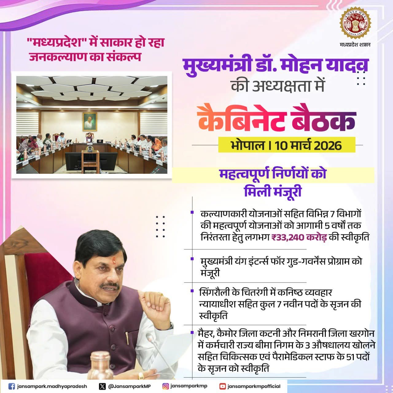 Dr Mohan Yadav CM Madhya Pradesh #MadhyaPradesh #CabinetDecisionsMP #CabinetMP #JansamparkMP