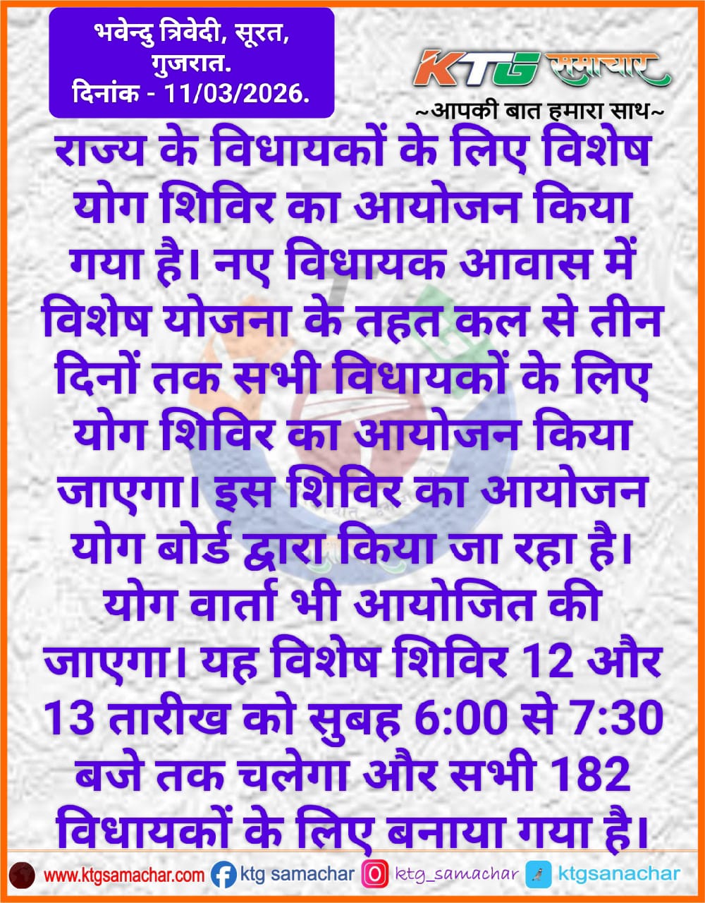 राज्यों के विधायकों के लिए विशेष योग शिविर का आयोजन किया गया है।