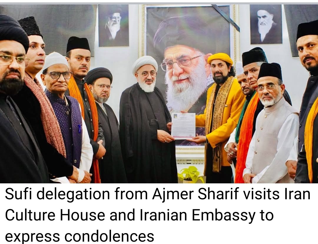 A Sufi spiritual delegation from the shrine of Hazrat Khwaja Moinuddin Hasan Chishti A.S (Gharib Nawaz) in Ajmer Sharif and other major shrines in India visited the Iran Culture House in New Delhi and later the Embassy of the Islamic Republic of Iran to express deep condolences on the martyrdom of Hazrat Grand Ayatollah Imam Ali Khamenei.