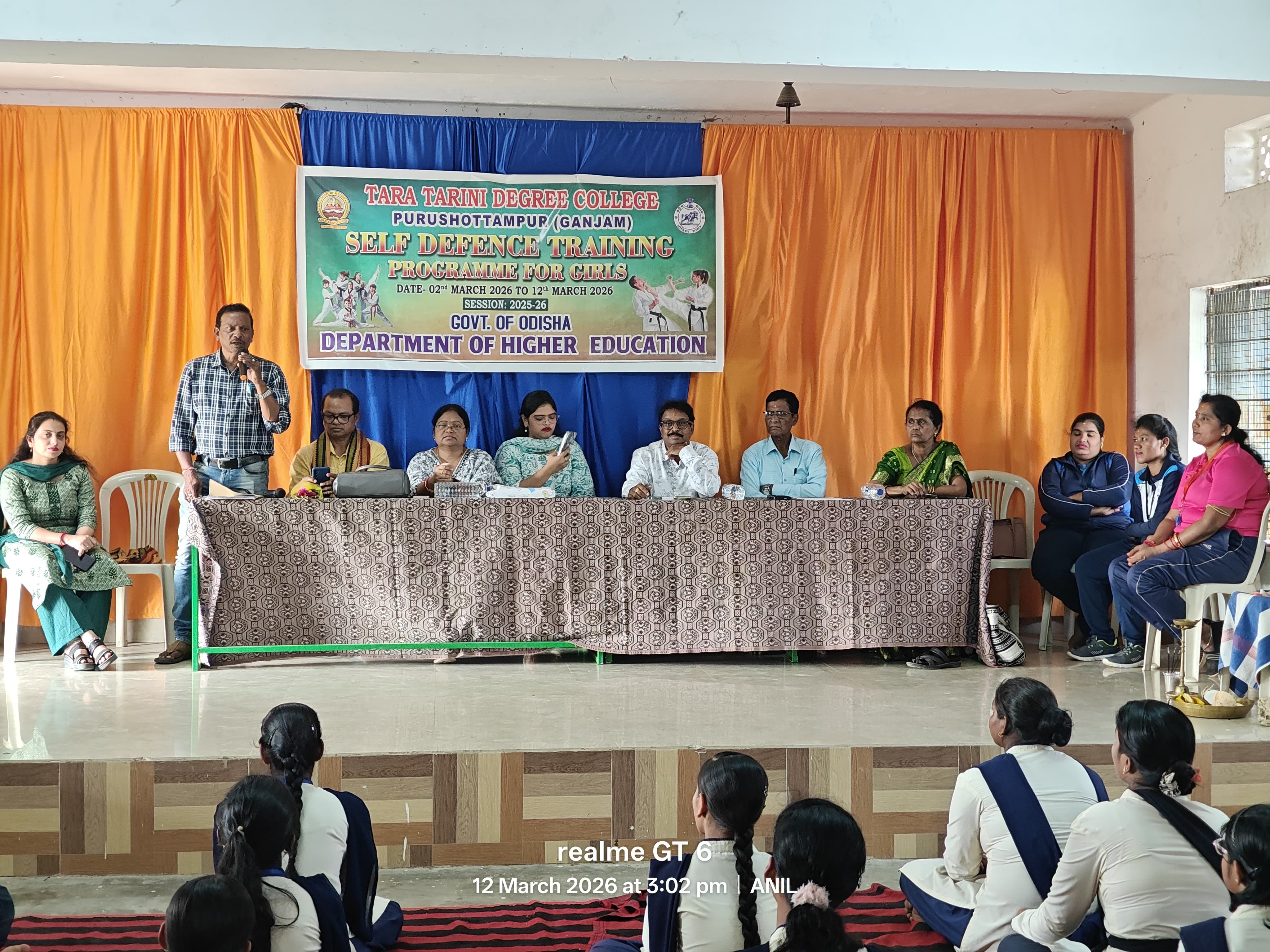 ଗଞ୍ଜାମ ଜିଲ୍ଲା -ପୁରୁଷୋତ୍ତମପୁର,ତା-୧୨/୦୩/୨୦୨୬: ସ୍ଥାନୀୟ ତାରାତାରିଣୀ ମହାବିଦ୍ୟାଳୟରେ ଯୁକ୍ତତିନି ସ୍ତରର ଛାତ୍ରୀମାନଙ୍କ ପାଇଁ ଆୟୋଜିତ ଆଠଦିନିଆ ଆତ୍ମସୁରକ୍ଷା ତାଲିମ ଶିବିରର ଉଦଯାପନ ଉତ୍ସବ ସଂଯୋଜିକା ଡ଼ଃ ଶ୍ରାବଣୀ ଖଟାଇଙ୍କ ପ୍ରତ୍ୟକ୍ଷ ତତ୍ତ୍ୱାବଧାନରେ ଉତ୍ସାହଭରା ପରିବେଶରେ ଅନୁଷ୍ଠିତ ହୋଇଛି। ଛାତ୍ରୀମାନଙ୍କ ମଧ୍ୟରେ ସାହସ, ସଚେତନତା ଓ ଆତ୍ମବିଶ୍ୱାସ ବୃଦ୍ଧି କରିବା ଉଦ୍ଦେଶ୍ୟରେ ଏହି ତାଲିମ ଶିବିରର ଆୟୋଜନ କରାଯାଇଥିଲା।