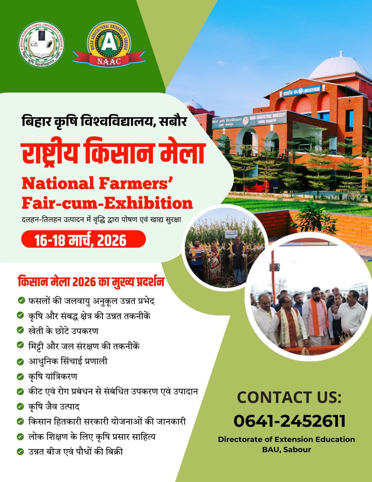 👉 किसी प्रकार की विशेष जानकारी के लिए संपर्क करें: 0641-2452611 विस्तार शिक्षा निदेशालय, बीएयू, सबौर