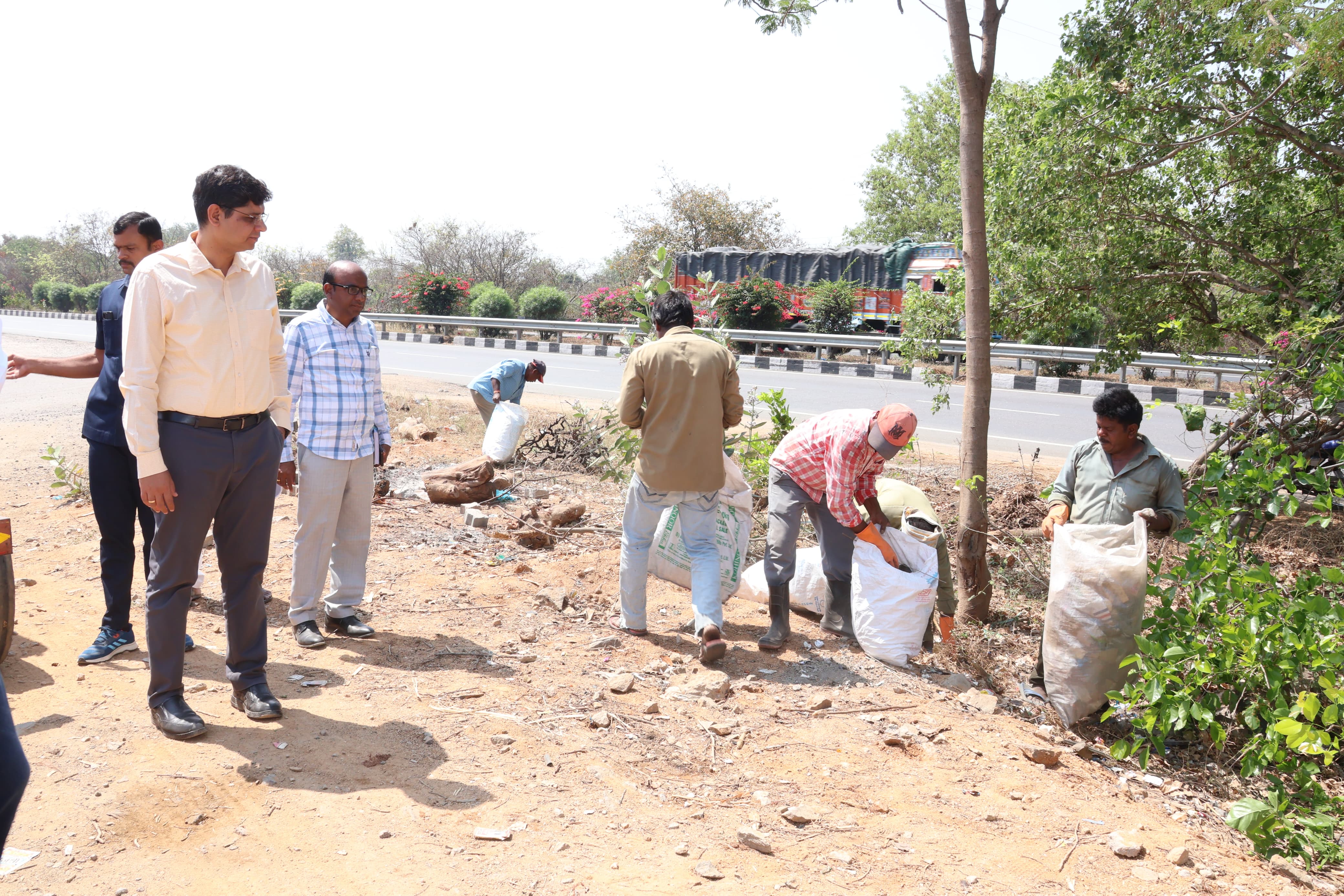 ప్రజాపాలన ప్రగతిప్రణాళికలో భాగంగా టెక్రియల్ చెరువు, మరియు క్రుప్రియల్ హైవే ఇరుపక్కలజరుగుతున్న శానిటేషన్ పనులను పరిశీలించిన కలెక్టర్ ఆశిష్ సాంగ్వన్