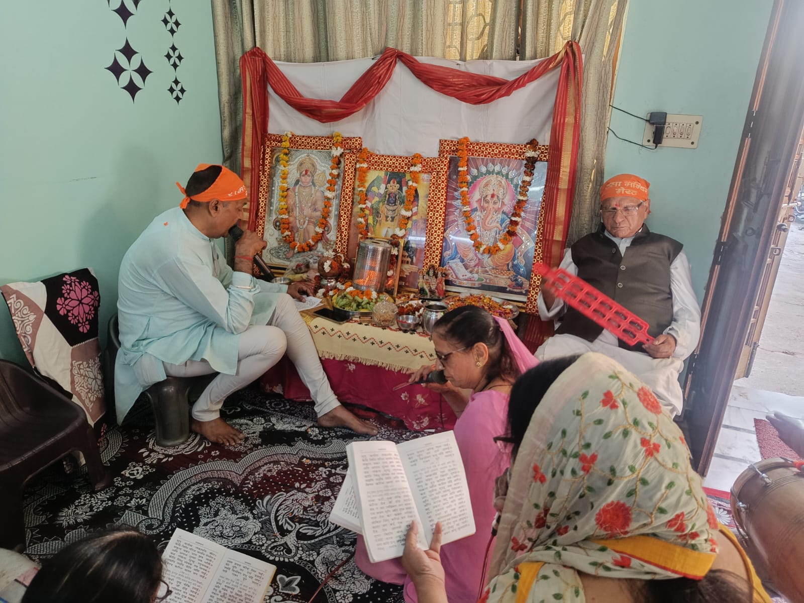 पूजन के तुरन्त बाद नवीना छाबड़ा ने गणेश वन्दना कि वीनू मिर्ग ने हनुमान जी का आवाहन किया । और शकुन्तला ठाकुर ने राम जी कि आराधना कि ( आओ जमाने वालों इस दर पे शर झुका लो ) सांई जी कि आराधना बोवी विच ने कि गुरुओं कि आराधना राज मिर्ग ने कि और मिन्नी सचदेवा ने महामाई कि ज्योत जन - जन तक पहुँचाई ।