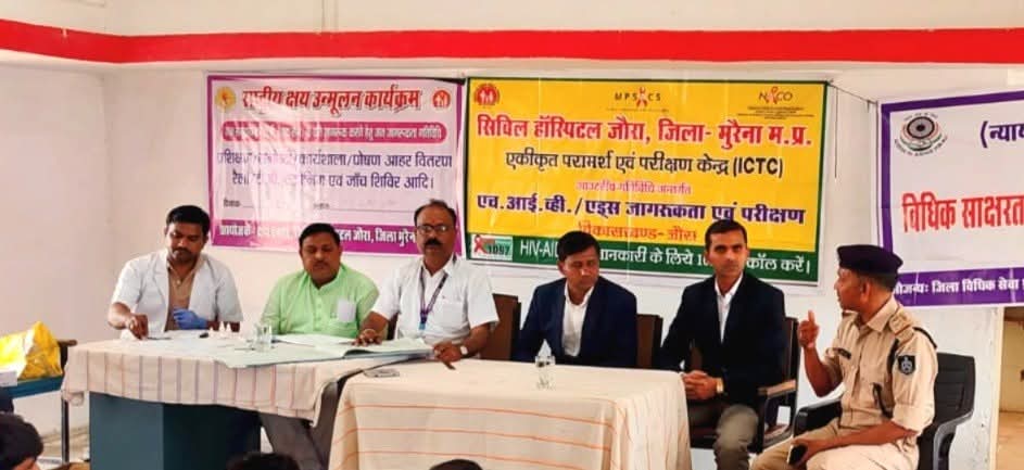 मुख्य चिकित्सा एवं स्वास्थ्य अधिकारी डॉ. पद्मेश उपाध्याय के निर्देशन में मुख्य खंड चिकित्सा अधिकारी डॉ. आरएस सेमिल के मार्गदर्शन में सिविल हॉस्पिटल जौरा द्वारा उप जेल जौरा में एकीकृत स्वास्थ्य जागरूकता एवं परीक्षण शिविर का आयोजन किया गया। शिविर में जिला विधिक सहायता अधिकारी श्री बृजेंद्र सिंह भदोरिया, न्यायाधीश श्री आशीष शर्मा अतिथि के रूप में उपस्थित रहे। इनके अलावा सहायक जेल अधीक्षक श्री बाबूलाल माहौर, डॉ. अनिल राजपूत, आईसीटीसी के परामर्शदाता श्री संदीप सेंगर मोजूद थे।