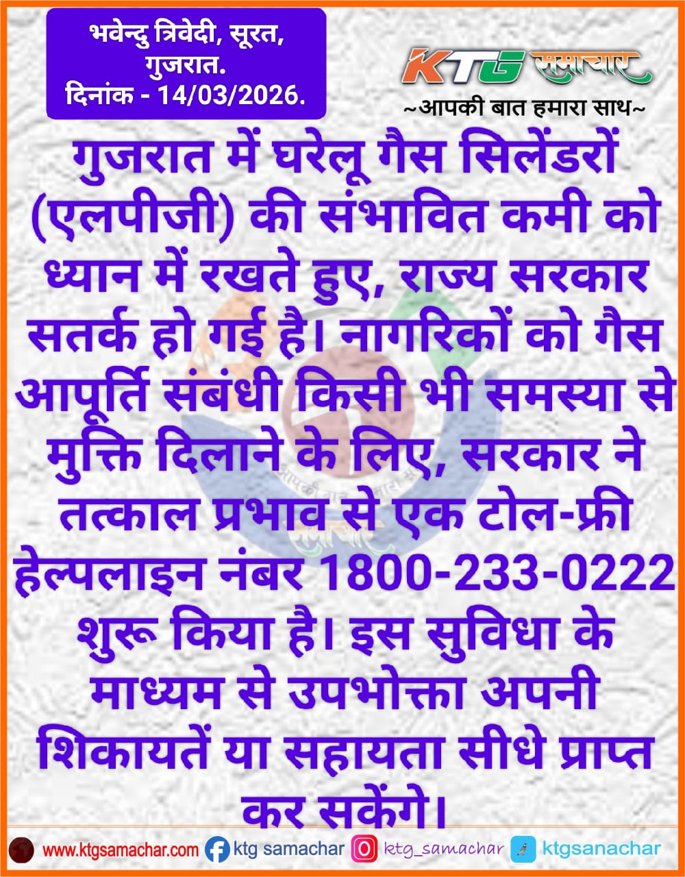 गुजरात में घरेलू गैस सिलेंडरों बाबत मे सरकार सतर्क।