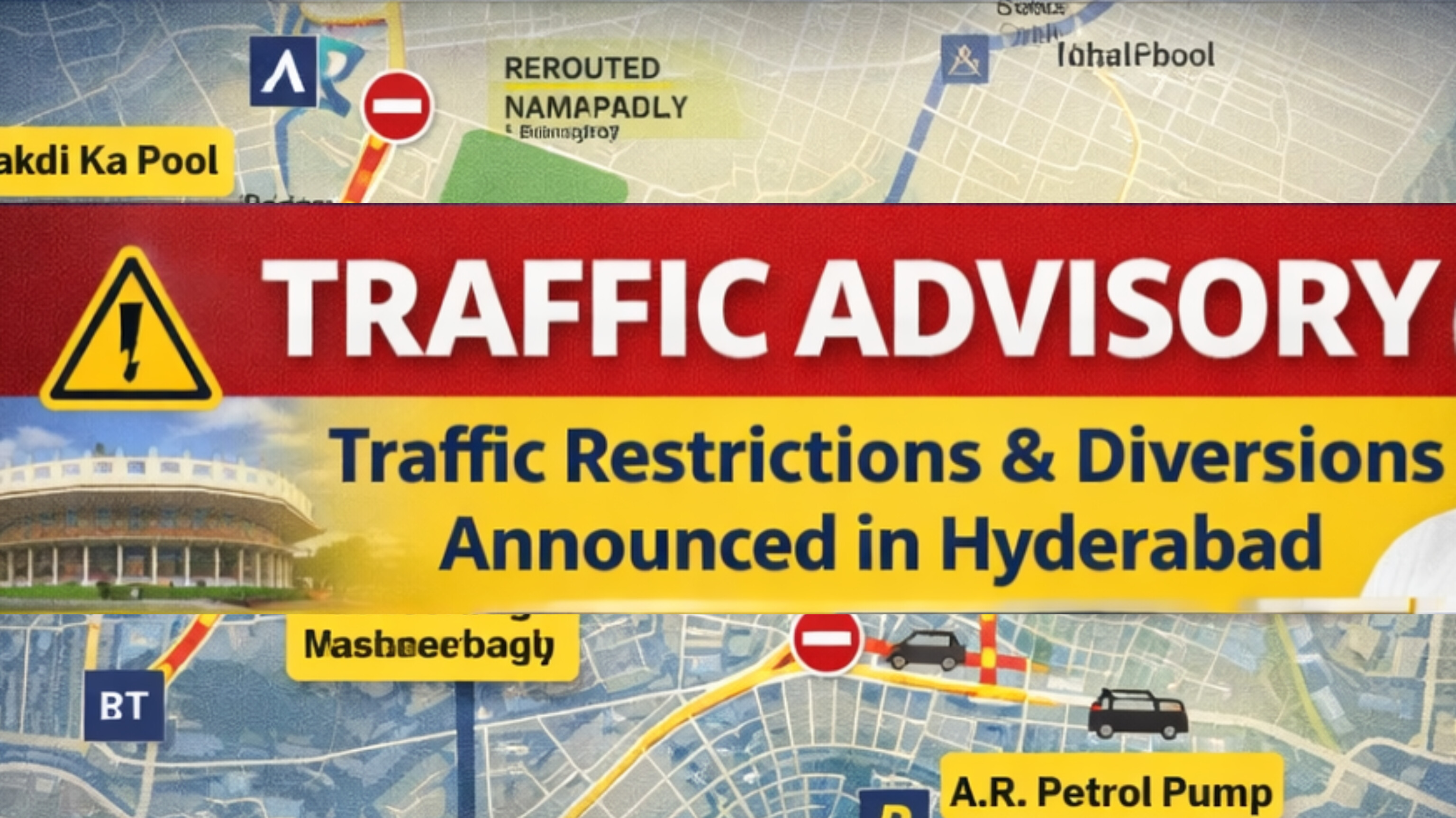 Authorities ne public ko advise kiya hai ki Lakdi Ka Pool, Iqbal Minar, Ravindra Bharathi, Hyderabad Traffic Police Junction, Basheerbagh, BJR Statue Circle, SBI Gunfoundry, A.R. Petrol Pump, KLK Building aur Liberty areas ko is waqt avoid karein.