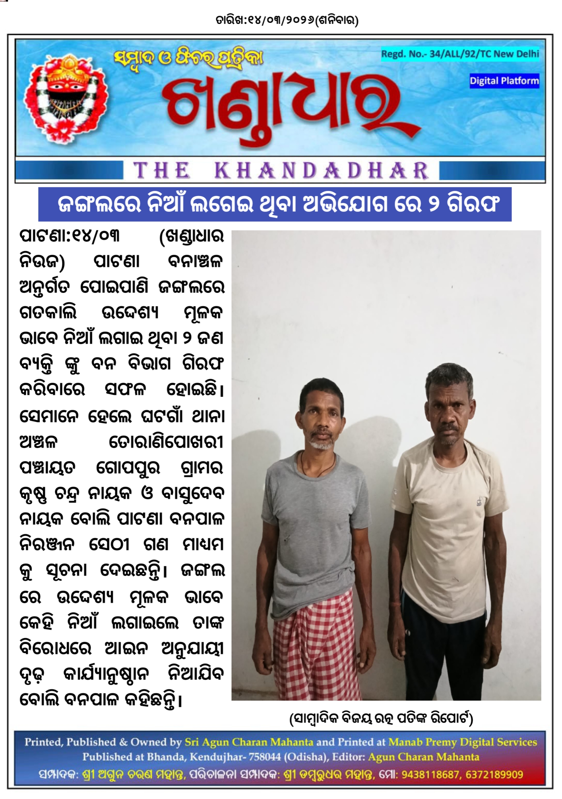 ଖଣ୍ଡାଧାର ନିଉଜ- ସାମ୍ବାଦିକ ବିଜୟ ରତ୍ନ ପତିଙ୍କ ରିପୋର୍ଟ।