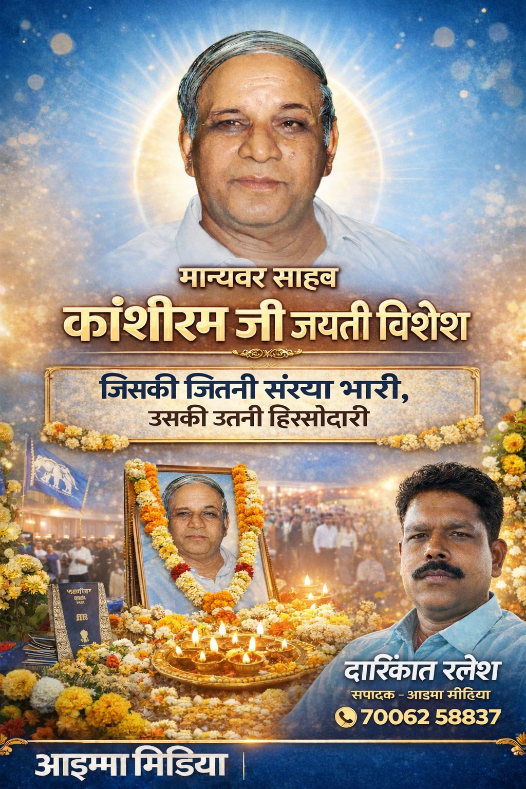 मान्यवर साहब कांशीराम जी की जयंती पर आइमा मीडिया परिवार की ओर से शत-शत नमन और हार्दिक शुभकामनाएं। 🙏