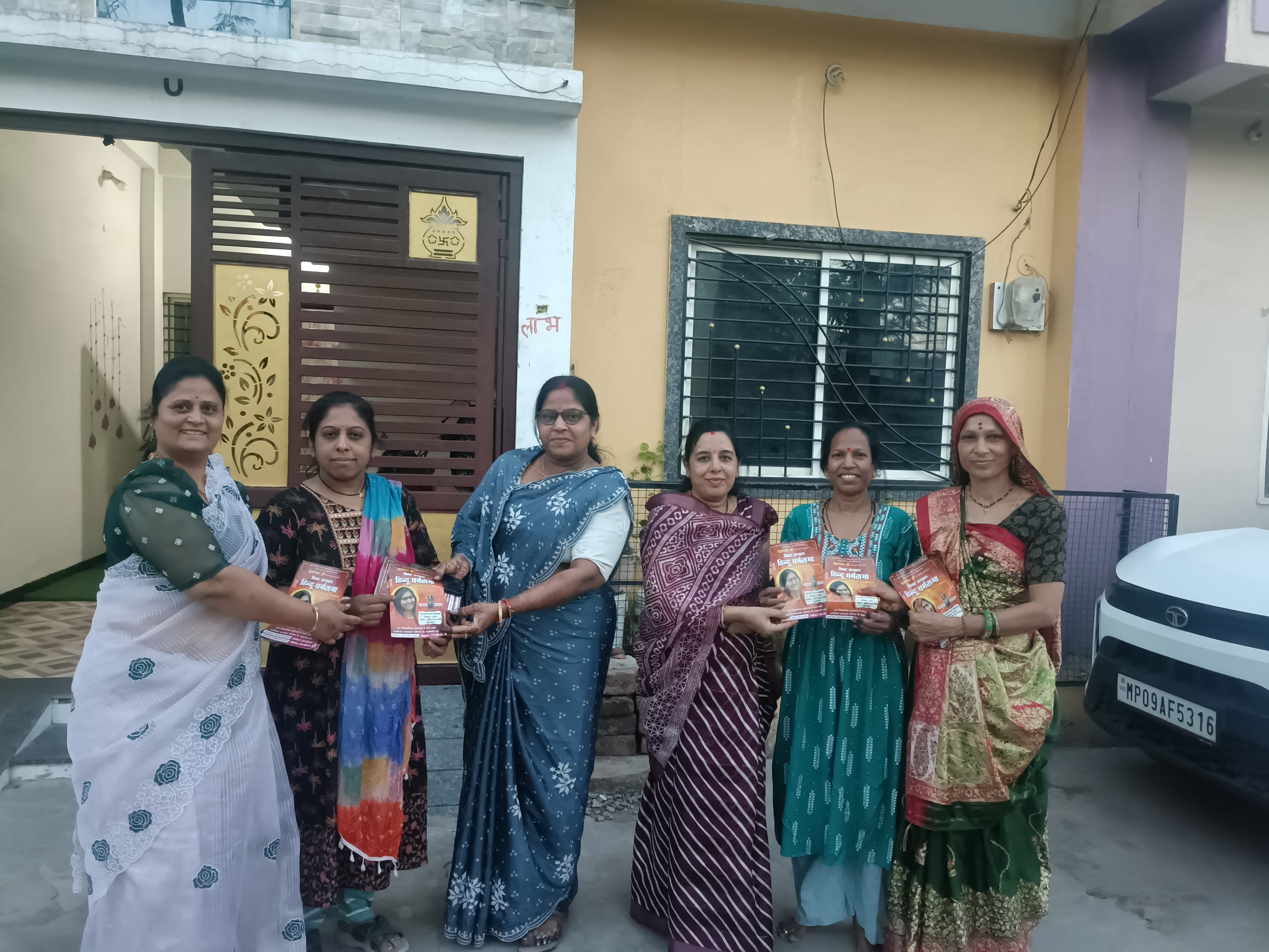 निमंत्रण पत्र माधुर कालोनी , शिवशक्ति कालोनी , वारकोसीटी , चाणक्यपूरी कालोनी में सुशीला शर्मा , गायत्री मारु , किरण पांचाल , भागवंता परमार , जयमाला गजभिये , प्रियंका शर्मा आदि महिलाओं ने अपना अमूल्य समय धर्म सभा के लिए दिया ।