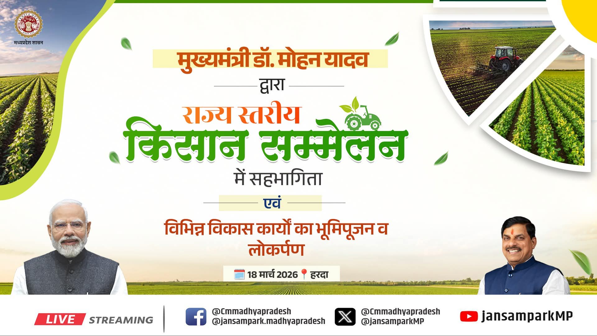 मुख्यमंत्री डॉ. मोहन यादव द्वारा राज्य स्तरीय किसान सम्मेलन में सहभागिता एवं विभिन्न विकास कार्यों का भूमिपूजन व लोकार्पण