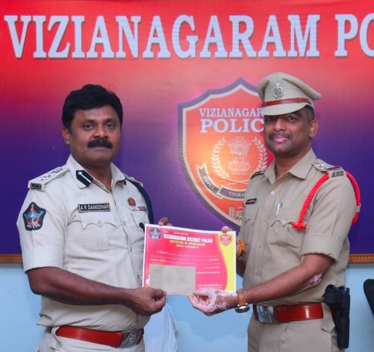 రాజాం రూరల్ సీఐగా విధులు నిర్వర్తిస్తున్న హనుమంతు ఉపేంద్రరావును జిల్లా ఎస్పీ ఏఆర్ దామోదర్ ప్రత్యేకంగా అభినందించారు. ఇటీవల రాజాం పట్టణంలో జరిగిన భారీ దొంగతనం కేసును ఛేదించడంలో చూపిన చాకచక్యానికి గుర్తింపుగా ఆయనకు ప్రశంస పత్రం మరియు ప్రోత్సాహక నగదు అందజేశారు.