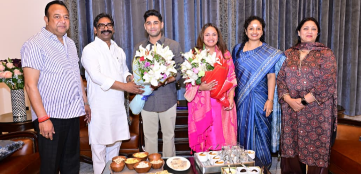 रांची (झारखंड)। मुख्यमंत्री श्री हेमन्त सोरेन एवं उनकी धर्मपत्नी विधायक श्रीमती कल्पना सोरेन आज हटिया विधायक श्री नवीन जायसवाल के दीपाटोली, कटहल मोड़, रांची स्थित आवास पहुंचे।