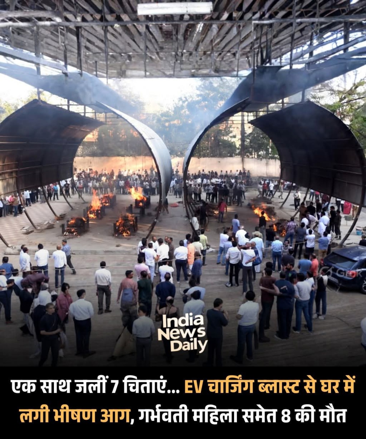 मध्य प्रदेश के इंदौर स्थित ब्रजेश्वरी एनेक्स कॉलोनी में बुधवार तड़के इलेक्ट्रिक कार चार्जिंग के दौरान शॉर्ट सर्किट होने से एक तीन मंजिला इमारत में भीषण आग लग गई। इस हादसे में एक ही परिवार के 8 लोगों की दर्दनाक मौत हो गई, जबकि 4 लोग घायल हैं। मृतकों में कारोबारी मनोज पुगलिया, उनकी गर्भवती बहू और 2 बच्चे शामिल हैं। एक पारिवारिक कार्यक्रम के चलते घर में बिहार से आए रिश्तेदार भी मौजूद थे।