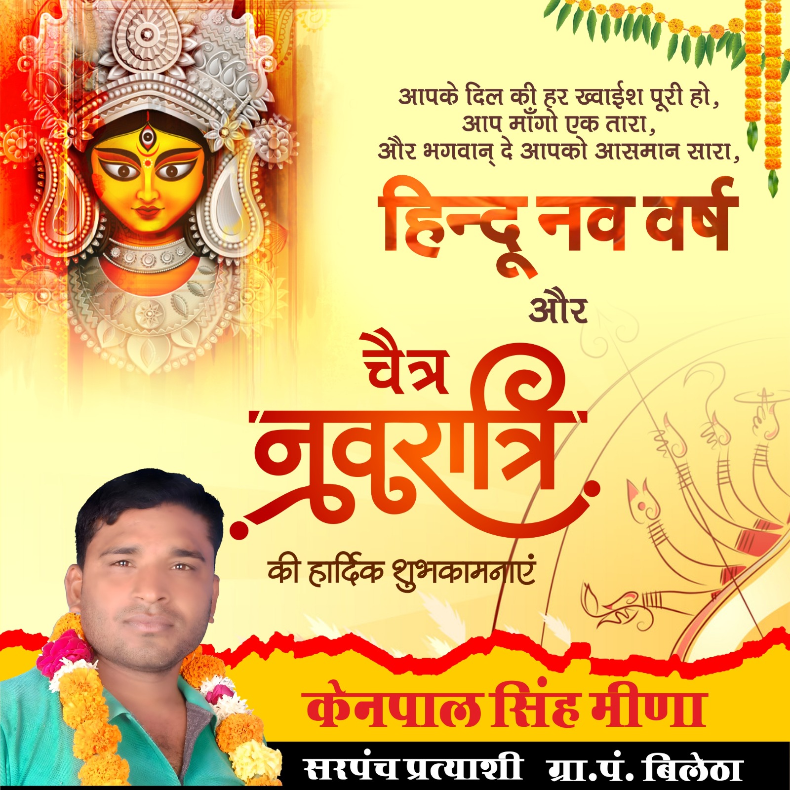 सभी को हिंदू नववर्ष, चैत्र नवरात्रि की शुभकामनाएं। यह नववर्ष आपके जीवन में शुभता, स्वास्थ्य और उन्नति लेकर आए। ।। जय माता दी ।।