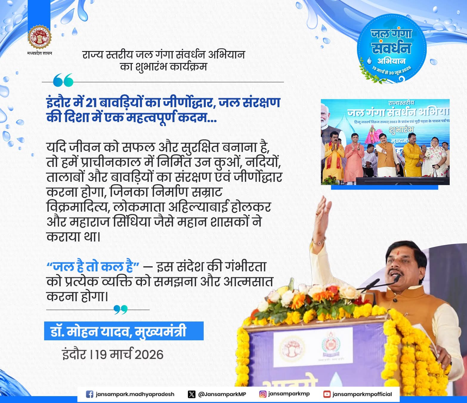 Dr Mohan Yadav CM Madhya Pradesh Panchayat, Rural Development and Social Welfare Department of Madhya Pradesh Department of Urban Development & Housing MP #MadhyaPradesh #जल_गंगा_संवर्धन_अभियान_MP #Indore #JansamparkMP