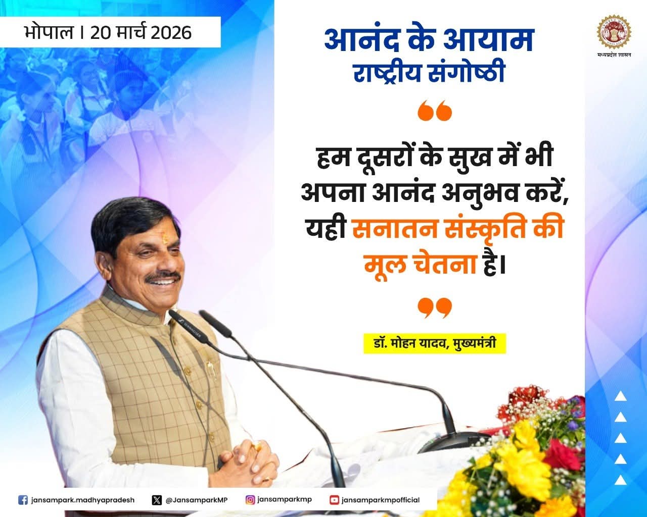 "हम दूसरों के सुख में अपना आनंद अनुभव करें, यही सनातन संस्कृति की मूल चेतना है।"