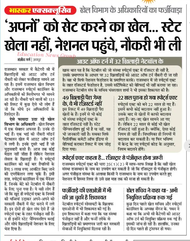 अपनों को सेट करने का खेल, स्टेट खेले नहीं, नेशनल पहुंचे, नौकरी भी मिली,,, सही मायने में राजस्थान के हर विभाग में बड़ा फर्जीवाड़ा