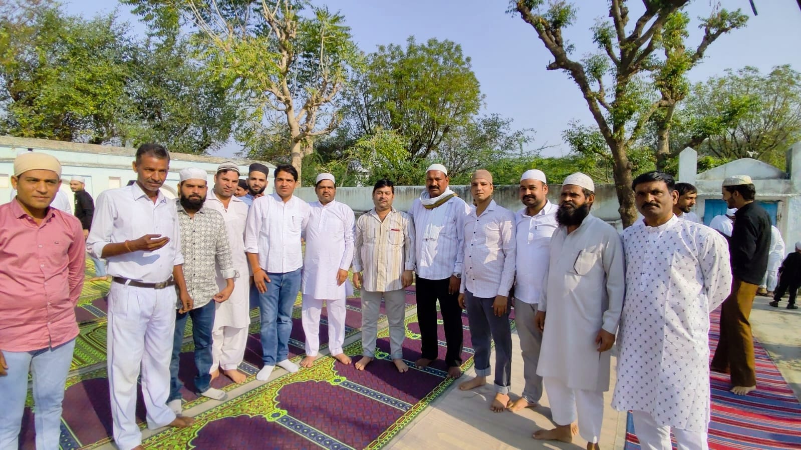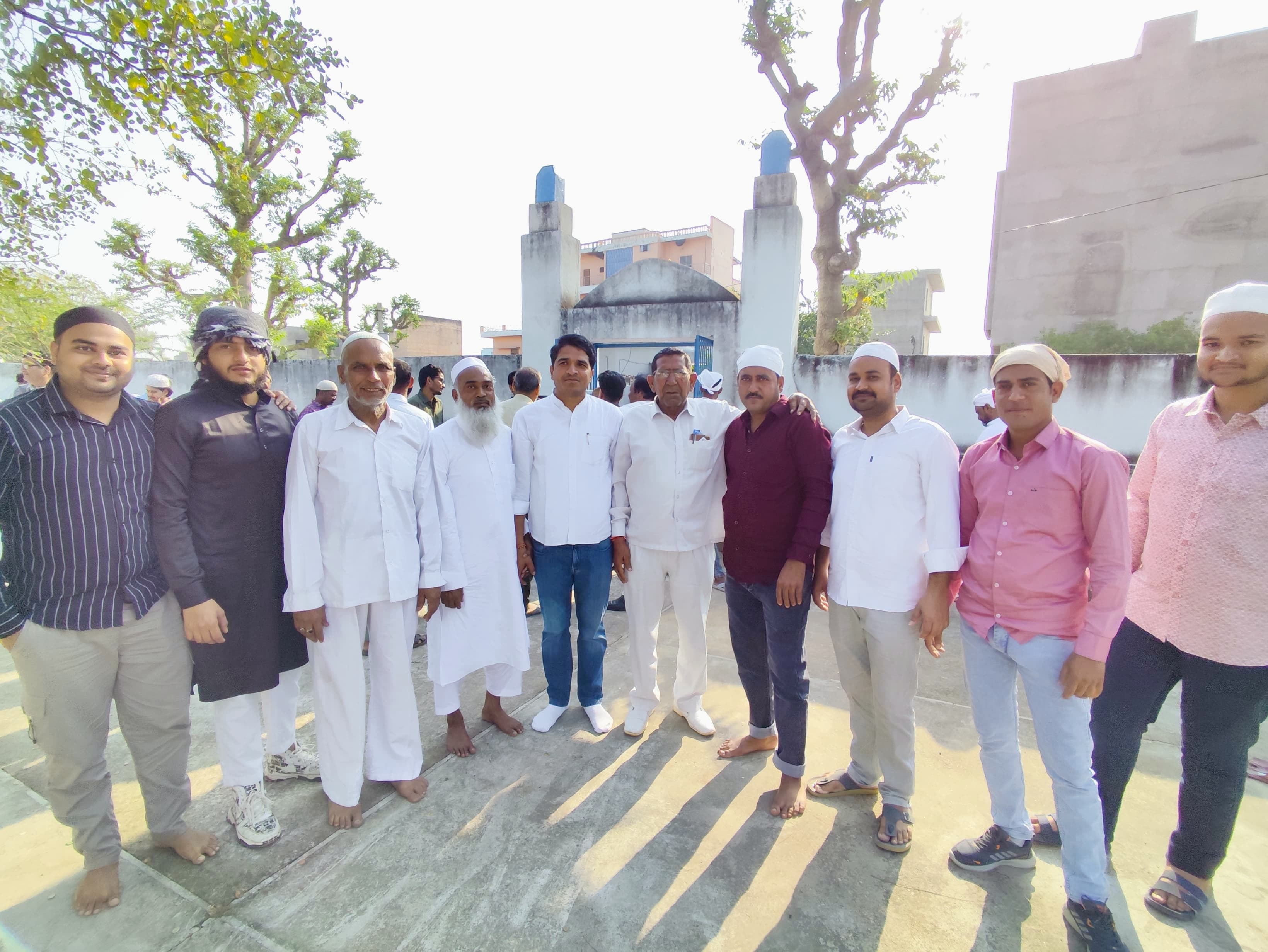 मुस्लिम समुदाय की ओर से नमाज और मुबारकबाद के इस मौके पर इकबाल खान, रफीक खान, शौकत मणियार, मैनुद्दीन मणियार, आमीन खान, ईदु खान, बरकत खान, शकूर, सलीम खान, उस्मान, शब्बीर, इब्राहिम, पीरू, शौकत अली, अयूब खान, अनवर (मौलाना शाहिद), मौलाना समस तबरेज और यासीन सहित बड़ी संख्या में समाज के लोग उपस्थित रहे।