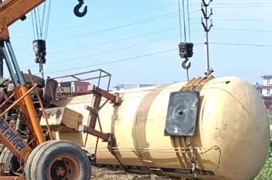 नेशनल हाईवे पर एलपीजी गैस कैप्सूल पलटाःचार घंटे यातायात बाधित