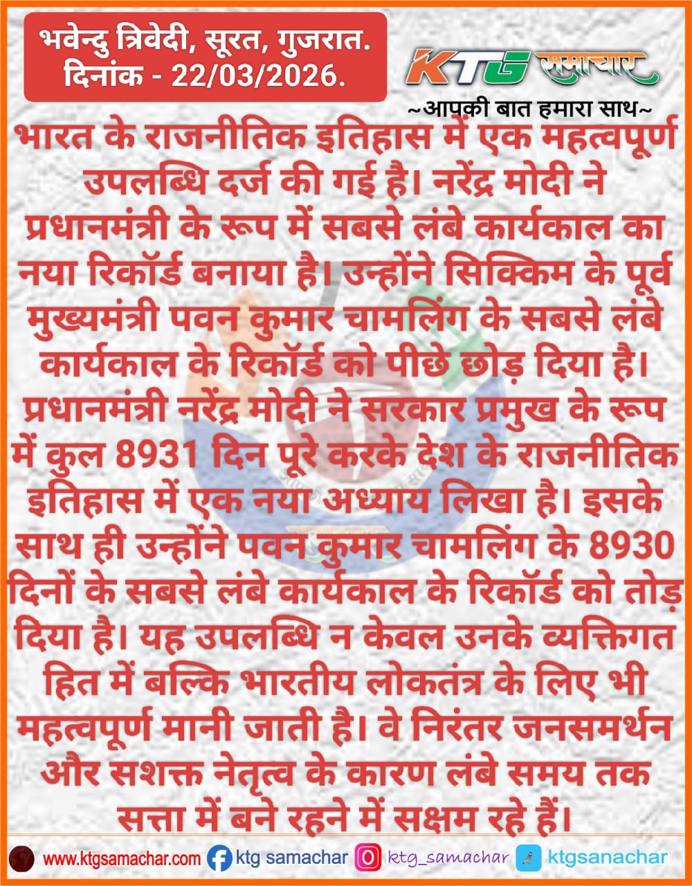 नरेंद्र मोदी ने प्रधानमंत्री के रूप में सबसे लंबे कार्यकाल का नया रिकॉर्ड बनाया है।