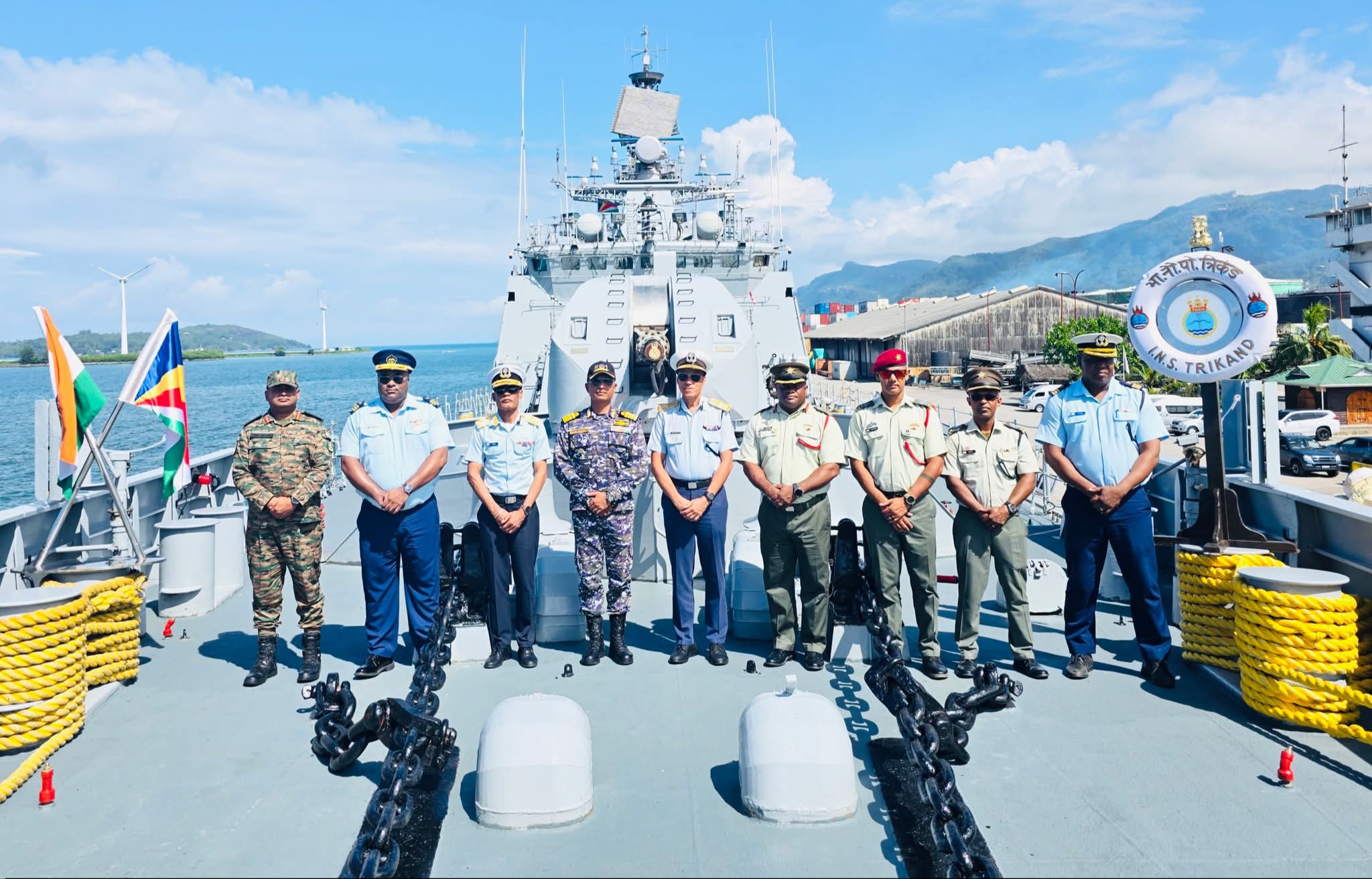 भारतीय नौसेना का स्टील्थ फ्रिगेट जहाज त्रिखंड, संवर्धन संबंधी बंदरगाह यात्रा पूरी करने के बाद 20 मार्च 2026 को सेशेल्स के पोर्ट विक्टोरिया से रवाना हो गया। जहाज के कमांडिंग ऑफिसर कैप्टन सचिन कुलकर्णी ने वरिष्ठ सरकारी अधिकारियों और सेशेल्स में भारत के उच्चायुक्त से मुलाकात की। जहाज ने सेशेल्स सरकार को महत्वपूर्ण पुर्जे और आवश्यक सामग्री भी सौंपी।भारतीय सेना, भारतीय वायु सेना और सेशेल्स रक्षा बलों (एसडीएफ) के सदस्यों के साथ, आईएनएस त्रिखंड ने अभ्यास लामितिये 2026 के पहले त्रि-सेवा संस्करण में भाग लिया। यह अभ्यास लामितिये के 11वें संस्करण में भारतीय नौसेना की पहली भागीदारी है।बंदरगाह चरण के दौरान, जहाज पर विजिट, बोर्ड, सर्च एंड सीजर (वीबीएसएस) प्रशिक्षण आयोजित किया गया, जिसमें संयुक्त बोर्डिंग अभ्यास भी शामिल थे। इसके बाद अभ्यास का समुद्री चरण शुरू हुआ, जिसके दौरान जहाज ने एससीजीएस ले विजिलेंट के साथ अभ्यास किया और भारतीय नौसेना के मरीन कमांडो और एसडीएफ के विशेष बलों की एक टीम द्वारा समुद्र में संयुक्त बोर्डिंग अभियान चलाया गया। इसके बाद भारतीय सेना और सेशेल्स रक्षा बलों के सैनिकों ने प्रस्लिन द्वीप पर लैंडिंग की। एसडीएफ के चीफ ऑफ डिफेंस फोर्सेज मेजर जनरल माइकल रोसेट, एसडीएफ के डिप्टी चीफ ऑफ डिफेंस फोर्सेज ब्रिगेडियर जीन अट्टाला और अन्य वरिष्ठ अधिकारी अभ्यास के संचालन को देखने के लिए समुद्री चरण के दौरान आईएनएस त्रिखंड पर सवार हुए। इस अभ्यास ने भारत और सेशेल्स के बीच अंतर-संचालनीयता बढ़ाने और समुद्री सहयोग को मजबूत करने का अवसर प्रदान किया। क्रियोल भाषा में 'मित्रता' का अर्थ रखने वाला ' लामितिये ' दोनों देशों के बीच ऐतिहासिक संबंधों को दर्शाता है। यह बंदरगाह पर आगमन भारत के महासागर (क्षेत्र भर में सुरक्षा और विकास के लिए पारस्परिक और समग्र उन्नति) के दृष्टिकोण को दर्शाता है, और हिंद महासागर क्षेत्र में पसंदीदा सुरक्षा भागीदार और प्रथम प्रतिक्रियाकर्ता बने रहने के लिए भारतीय नौसेना की प्रतिबद्धता को मजबूत करता है।
