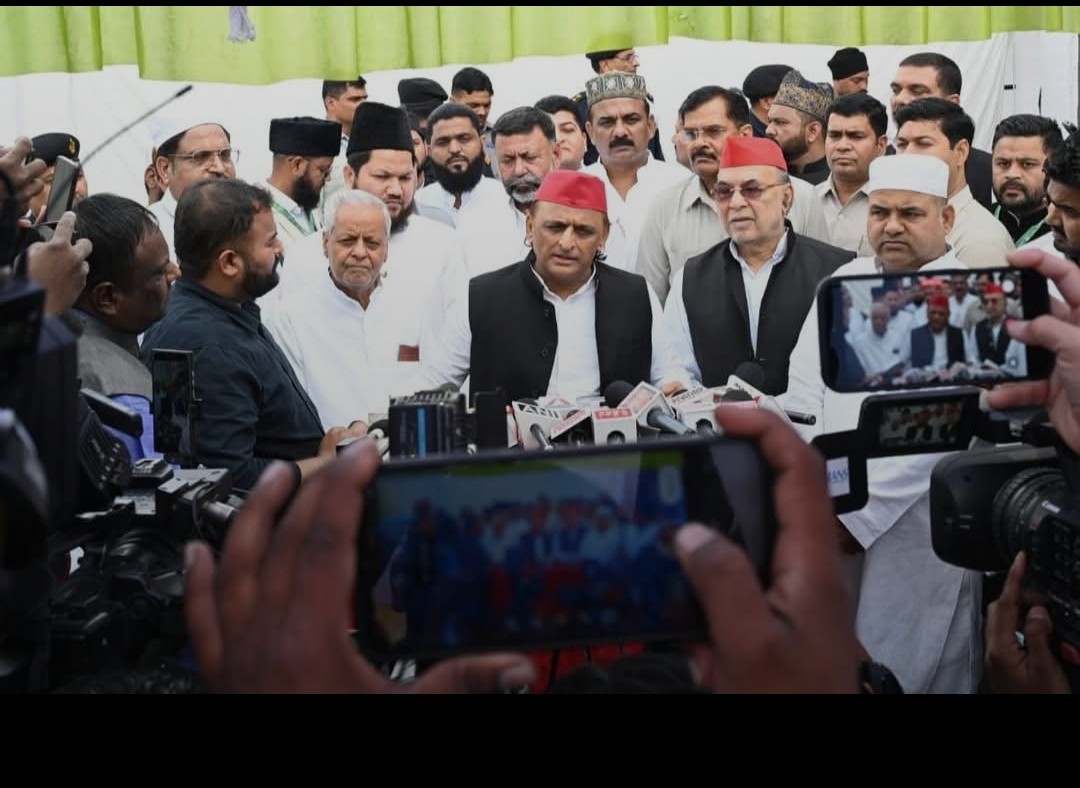 आज #लखनऊ ऐशबाग #ईदगाह में PDA के नायक माननीय राष्ट्रीय अध्यक्ष #Akhilesh Yadav जी मीडिया को संबोधित करते हुए।