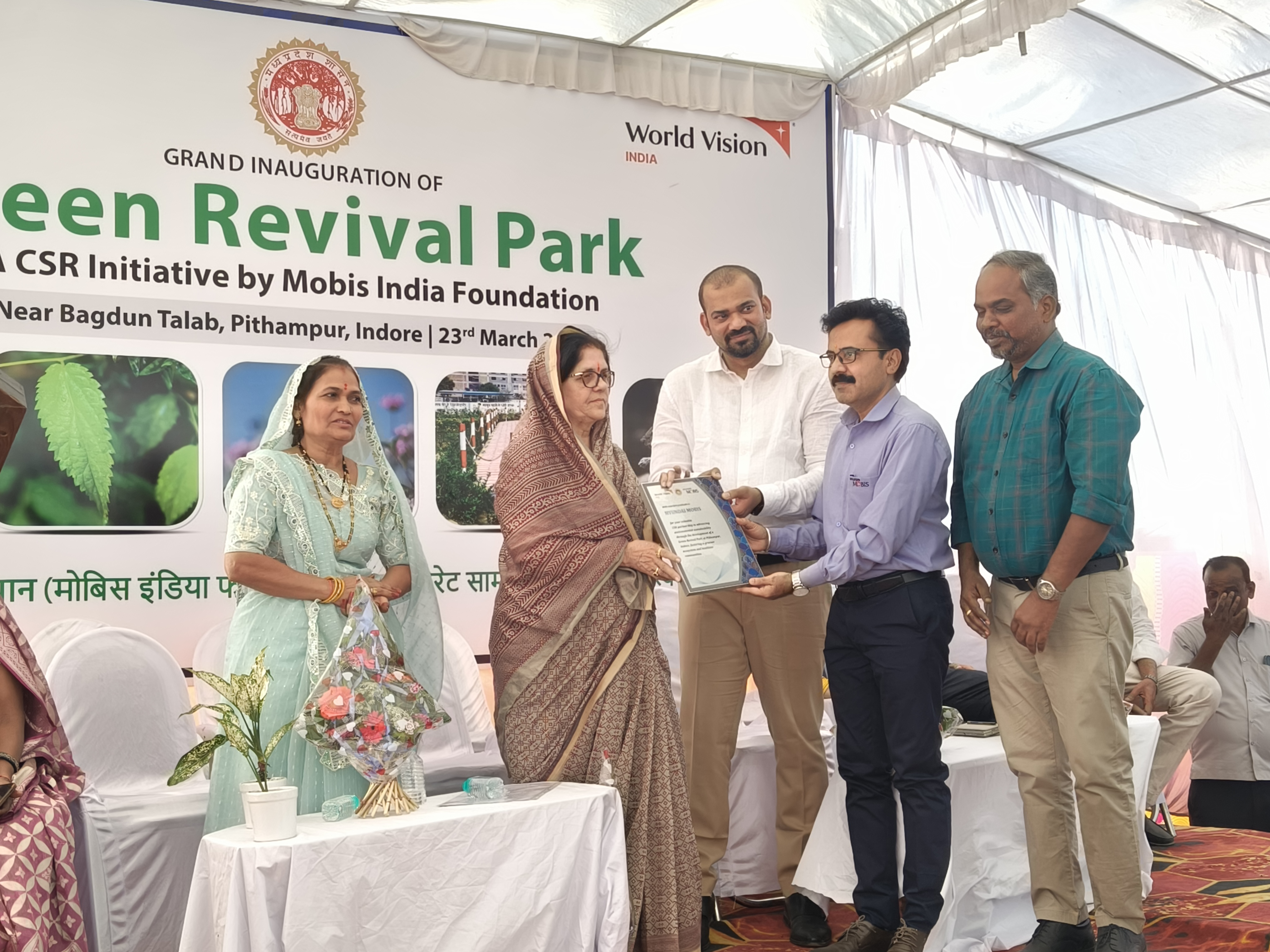 पर्यावरण संरक्षण और सामुदायिक कल्याण की दिशा में एक बड़ा कदम उठाते हुए, हुंडई मोबिस ने मध्य प्रदेश शासन और नगर पालिका परिषद पीथमपुर के सहयोग और वर्ल्ड विजन इंडिया के क्रियान्वयन के साथ पीथमपुर के बगदून तालाब के समीप "हरित विकास उद्यान" परियोजना का सफल लोकार्पण एवं हस्तांतरण समारोह धार विधायक महोदय श्रीमती नीना विक्रम वर्मा, नगर पालिका अध्यक्ष श्रीमति सेवंती सुरेश पटेल, मुख्य नगर पालिका अधिकारी श्री निशिकांत शुक्ला,अध्यक्ष प्रतिनिधि श्री सुरेश पटेल, पार्षद श्रीमति लीला महेश पथरिया, श्रीमति मनीषा लालू शर्मा, श्री लालू शर्मा की उपस्थिति में आयोजित हुआ
