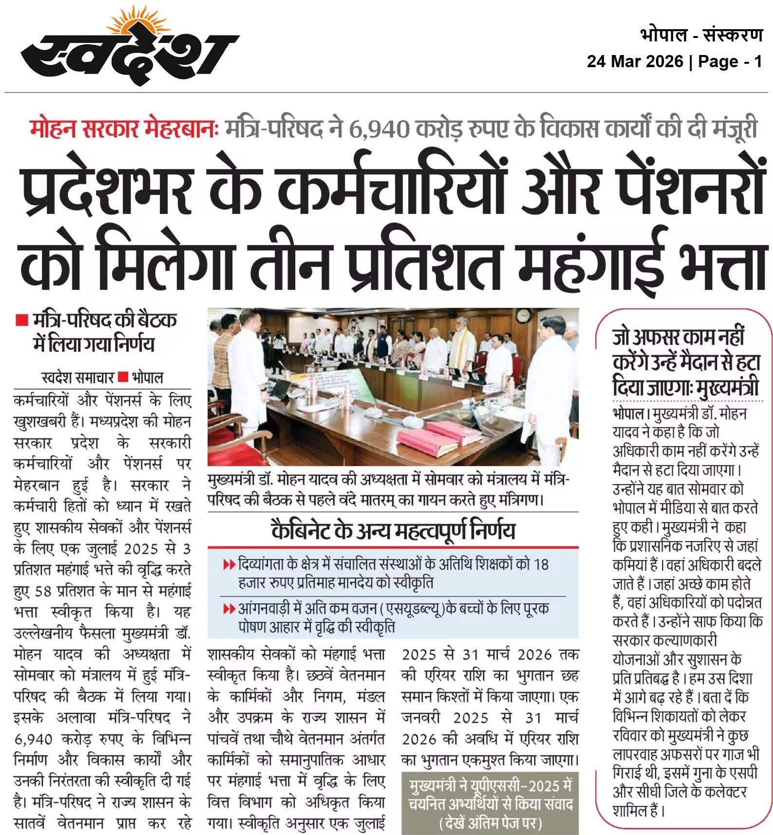 मंत्रिपरिषद ने ₹6,940 करोड़ के विभिन्न निर्माण और विकास कार्यों की दी मंजूरी