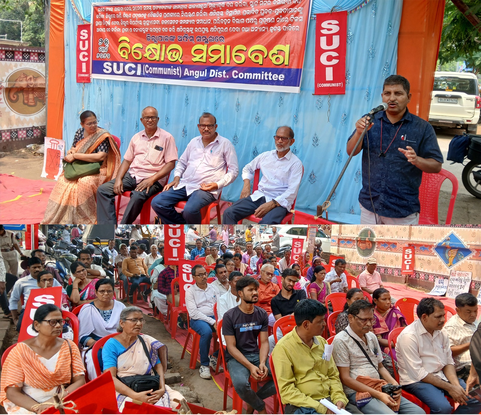 ଅନୁଗୁଳ(କରୁଣାକର ନାୟକ )-୨୫/୦୩ । ମଧ୍ୟପ୍ରାଚ୍ୟରେ ଯୁଦ୍ଧ ବିଭୀଷିକାର ଆଳରେ ରନ୍ଧନ ଗ୍ୟାସ୍, ଖାଇବା ତେଲ ସମେତ ସମସ୍ତ ନିତ୍ୟବ୍ୟବହାର୍ଯ୍ୟ ସାମଗ୍ରୀର ଆକାଶଛୁଆଁ ମୂଲ୍ୟବୃଦ୍ଧି ଯୋଗୁଁ ସାଧାରଣ ମଣିଷର ଜୀବନ ଜୀବିକା ବହୁ ଭାବରେ ପ୍ରଭାବିତ ହୋଇଛି । ରନ୍ଧନ ଗ୍ୟାସ୍ ଓ ଖାଇବା ତେଲର ମୂଲ୍ୟବୃଦ୍ଧି ବନ୍ଦ କରିବାରେ ସରକାର ସର୍ମ୍ପୂ ବିଫଳ ହୋଇଛନ୍ତି । ମୂଲ୍ୟବୃଦ୍ଧି ରୋକିବାରେ ସରକାରଙ୍କର ବିଫଳତା ଓ ଜନବିରୋଧୀ ନୀତି ପ୍ରତିବାଦରେ ଆଜି ଏସ୍.ୟୁ.ସି.ଆଇ (କମୁ୍ୟନିଷ୍ଟ) ଅନୁଗୁଳ ଜିଲ୍ଲା କମିଟି ପକ୍ଷରୁ ଏକ ବିକ୍ଷୋଭ ସମାବେଶ ଅନୁଷ୍ଠିତ ହୋଇଛି । ରନ୍ଧନ ଗ୍ୟାସ୍, ଖାଇବା ତେଲ ସମେତ ସମସ୍ତ ଅତ୍ୟାବଶ୍ୟକ ସାମଗ୍ରୀର ଆକାଶଛୁଆଁ ମୂଲ୍ୟବୃଦ୍ଧି ବନ୍ଦ କରିବା, ଜିଲ୍ଲା ମୁଖ୍ୟ ଚିକିାଳୟ ସମେତ ସମସ୍ତ ଡାକ୍ତରଖାନାରେ ବିଶେଷଜ୍ଞ ଡାକ୍ତର, କର୍ମ·ରୀ ଓ ଆନୁଷଙ୍ଗୀକ ଉପକରଣ ଯୋଗାଇଦେବା, ପରିବହନ ବିଭାଗ ପକ୍ଷରୁ ଯାନବାହାନ ଉପରେ ପ୍ରଦୂଷଣ ଓ ବିଭିନ୍ନ ଆଳରେ ଟିକସ ଆଦାୟ ଏବଂ ଜୁଲୁମ୍ ବନ୍ଦ କରିବା, ବିଦୁ୍ୟତ୍ ସେବା କ୍ଷେତ୍ରରେ ପ୍ରିପେଡ୍ ସ୍ମାର୍ଟ ମିଟର ଲଗାଇବା ବନ୍ଦ କରିବା ଏବଂ ଘରୋଇ ବିଦୁ୍ୟତ୍ ବିତରଣ କମ୍ପାନୀର ଜୁଲୁମ୍ ବନ୍ଦ କରିବା ସହିତ ଘରୋଇ ବିଦୁ୍ୟତ୍ ଉପଭୋକ୍ତାଙ୍କୁ ରିହାତି ମୂଲ୍ୟରେ ବିଦୁ୍ୟତ୍ସେବା ଯୋଗାଇଦେବା, ସମସ୍ତ ପଞ୍ଚାୟତକୁ ମୁଖ୍ୟମନ୍ତ୍ରୀ ବସ୍ସେବା ଚଳାଚଳ କରାଇବାସହ ବର୍ଦ୍ଧିତ ବସ୍ ଭଡା ପ୍ରତ୍ୟାହାର କରିବା, ଜିଲ୍ଲାରେ ଖଣି, ଶିଳ୍ପ ସଂସ୍ଥାଦ୍ୱାରା ହେଉଥିବା ପ୍ରଦୂଷଣକୁ ବୈଜ୍ଞାନିକ ପ୍ରଣାଳୀରେ ନିୟନ୍ତ୍ରଣ କରାଯିବା ସହ ସ୍ଥାନୀୟ ଖଣି, କାରଖାନାରେ କ୍ଷତିଗ୍ରସ୍ତ ବିସ୍ଥାପିତ ପରିବାରର ଯୁବକ-ଯୁବତୀମାନଙ୍କୁ ସ୍ଥାୟୀ ନିଯୁକ୍ତି ଦେବା, ସର୍ବସାଧାରଣ ପାଇଁ ଉିଷ୍ଟ ରାସ୍ତାରେ ଖଣି ଓ କାରଖାନାର ମାଲ୍ ବୋଝେଇ ଭାରିଯାନ ଚଳାଚଳ ବନ୍ଦ କରିବା ଏବଂ କୋଇଲା ପରିବହନ ପାଇଁ ସ୍ୱତନ୍ତ୍ର କରିଡର ନିର୍ମାଣ କରିବା, ଜିଲ୍ଲାରେ ପ୍ରସ୍ତାବିତ ସୁରେଶ୍ୱରୀ, ଧଉରାଗୋଠ ସମେତ ସମସ୍ତ ଜଳସେଚନ ଯୋଜନା ଗୁଡିକୁ କାର୍ଯ୍ୟକାରୀ କରିବା, ହାତୀ ଓ ଅନ୍ୟାନ୍ୟ ବନ୍ୟଜନ୍ତୁଙ୍କ ଉପଦ୍ରବ ବନ୍ଦ କରି କ୍ଷତିଗ୍ରସ୍ତଙ୍କୁ ଉପଯୁକ୍ତ କ୍ଷତିପୂରଣ ଯୋଗାଇଦେବା, ମଦ, ଡ୍ରଗ୍ସ, ଅଶ୍ଳୀଳତା, ଅପସଂସ୍କୃତିର ପ୍ର·ର ପ୍ରସାର ବନ୍ଦ କରିବାସହ ଛାତ୍ରୀ ଓ ମହିଳାମାନଙ୍କ ନିରାପତ୍ତାକୁ ସୁନିଶ୍ଚିତ କରିବା ଦାବିରେ ଏସ୍.ୟୁ.ସି.ଆଇ (କମୁ୍ୟନିଷ୍ଟ) ଅନୁଗୁଳ ଜିଲ୍ଲା କମିଟି ପକ୍ଷରୁ ସ୍ଥାନୀୟ ତହସିଲ ଅଫିସ ପାଶ୍ୱର୍ରେ ଏକ ବିକ୍ଷୋଭ ସମାବେଶ ଅନୁଷ୍ଠିତ ହୋଇଛି । ବିକ୍ଷୋଭ ପୂର୍ବରୁ ଶତାଧିକ ପୁରୁଷ ମହିଳା ଏକ ଶୋଭାଯାତ୍ରାରେ ଗୋପବନ୍ଧୁ ପାର୍କ ଠାରୁ ବାହାରି ଅନୁଗୁଳ ବଜାର, ପୁରୁଣା ବସଷ୍ଟା, କାଞ୍ଚନ ଟକିଜ୍ ଛକ ଦେଇ ବିକ୍ଷୋଭ ସ୍ଥଳରେ ପହଞ୍ଚô ଥିଲେ । ସେଠାରେ ଏସ୍.ୟୁ.ସି.ଆଇ (କମୁ୍ୟନିଷ୍ଟ) ଅନୁଗୁଳ ଜିଲ୍ଲା କମିଟି ସଭ୍ୟ ପ୍ରହଲ୍ଲାଦ ଚନ୍ଦ୍ର ସାହୁଙ୍କ ସଭାପତିତ୍ୱରେ ଅନୁଷ୍ଠିତ ବିକ୍ଷୋଭ ସମାବେଶରେ ରାଜ୍ୟ କମିଟି ସଭ୍ୟ ଜୟସେନ୍ ମେହେର, ବ୍ରଜବନ୍ଧୁ ସାହୁ, ଜିଲ୍ଲା କମିଟି ସଭ୍ୟ ନବକିଶୋର ପ୍ରଧାନ, ସୁବାସ ପ୍ରଧାନ, ତୀର୍ଥବାସୀ ଭୋଇ, ସଞ୍ଜୟ ସାହୁ, ରଣଜିତ ପ୍ରଧାନ, ସରୋଜିନୀ ନାୟକ, ମାନସୀ ସ୍ୱାଇଁ, ପରମାନନ୍ଦ ସାହୁ, ଟୁନା ନାଏକ, ଚିତ୍ତରଞ୍ଜନ ମେୁଳି, ପରିବେଶବିତ୍ ପ୍ରମୋଦ ବେହେରା ପ୍ରମ