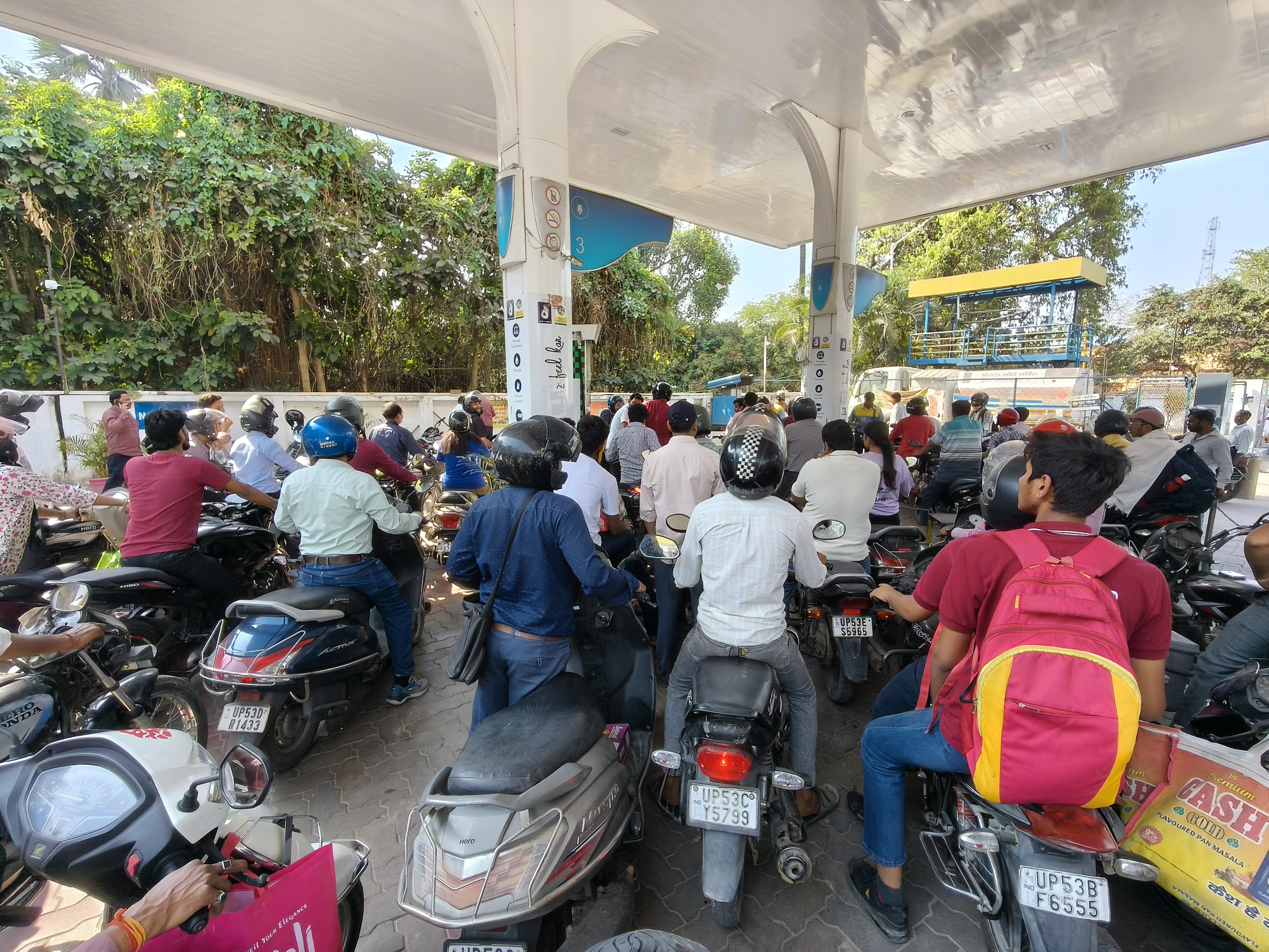 अफ़वाहों की वजह से पेट्रोल पम्प पर लग रही लोगों की भीड़, गोरखपुर