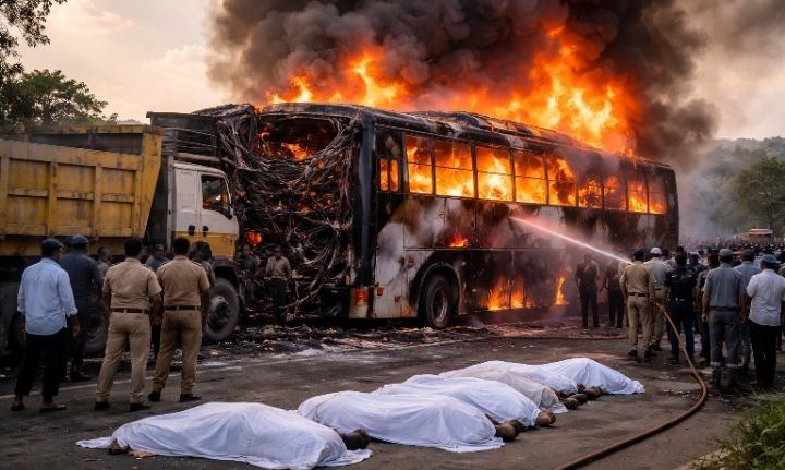 మార్కాపురంలో దారుణ ప్రమాదం – బస్సు అగ్నికి ఆహుతి, 10 మంది మృతి