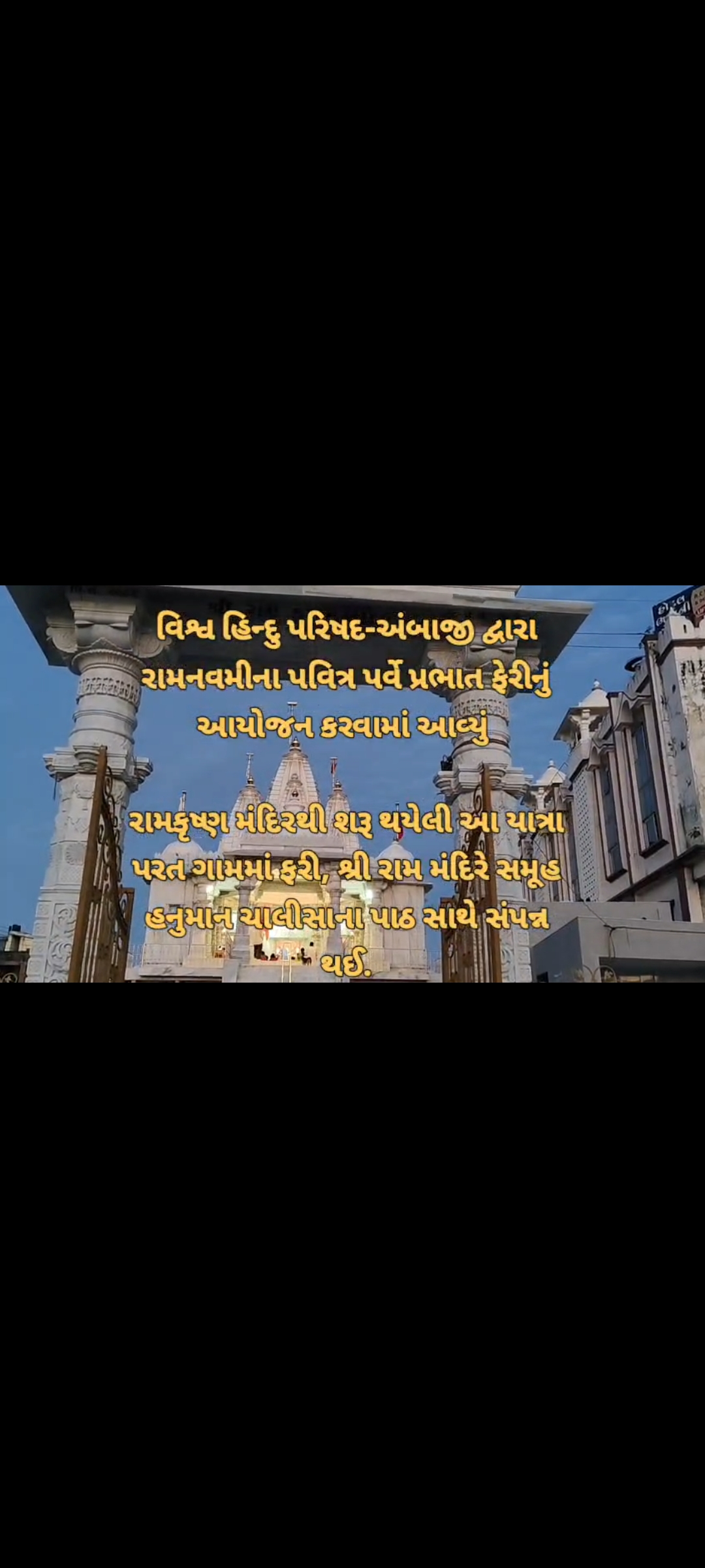 विश्व प्रसिद्ध यात्रधाम अंबाजी में नवनिर्मित राम मंदिर में भव्य भगवान श्री राम का जन्मोत्सव मनाया गया इस मौके में विश्वहिंदू परिषद द्वारा काफी सालों बाद रामनवमी की सुबह में शास्त्रों विधि करके प्रभात फेरी का आयोजन किया गया। जिसमें अंबाजी गांव के महिला सरपंच श्री कल्पनाबेन हेमनतभाई दवे, गांव के अग्रणी ओर गांव वालो नो अंबानी गांव की पूरी परिक्रमा कर के राम मंदिर में हनुमान चालीसा किया।
