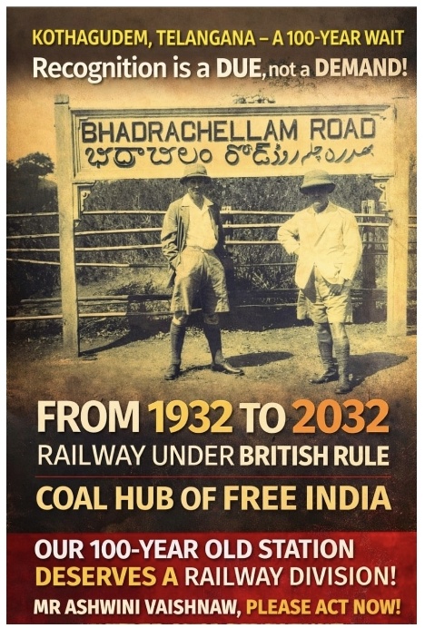 కొత్తగూడెం ను రైల్వే డివిజన్ చేయాలి (భద్రాచలం రోడ్డు)