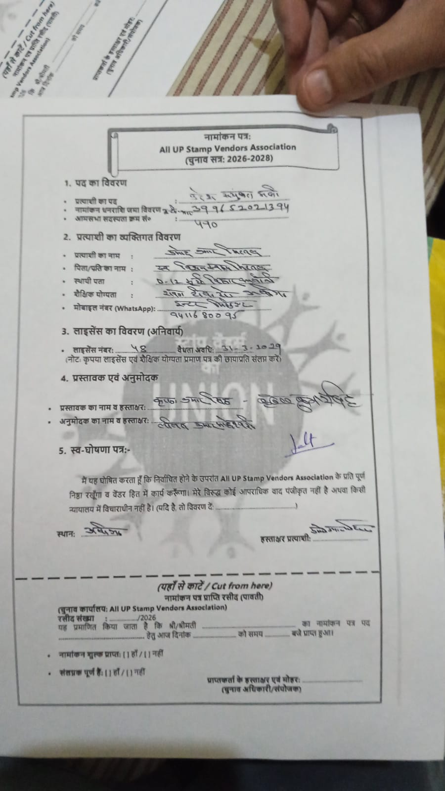 ऑल यूपी स्टांप वेंडर्स एसोसिएशन, प्रधान कार्यालय तहसील बिंदकी, जिला फतेहपुर (रजिस्ट्रेशन संख्या 10040/2016) के आगामी तीन वर्षीय कार्यकाल 2026-2028 हेतु प्रदेश कार्यकारिणी के विभिन्न पदों के लिए नामांकन प्रक्रिया दिनांक 27 मार्च 2026 को रात्रि 8:15 बजे सफलतापूर्वक पूर्ण हो गई।