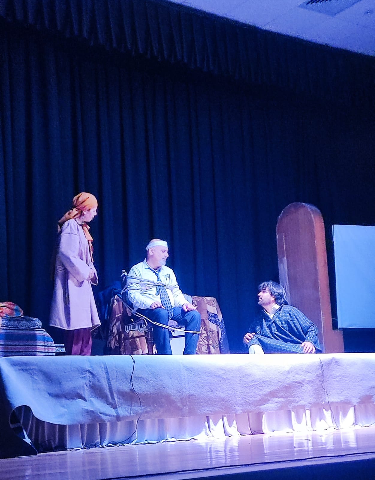 नाटक में गुलाम रसूल बने अनुज शर्मा, डॉक्टर सिद्धांत कौल बने सुधीर सनवाल और नफीसा बनी सीमा समर ने अंत तक दर्शकों को अपने अभिनय से बांधे रखा। संगीत एवं प्रकाश व्यवस्था विकास राज एवं क्षितिज तिवारी ने की। स्टेज मैनेजमेंट संभव एवं आशीष तोमर ने संभाला।