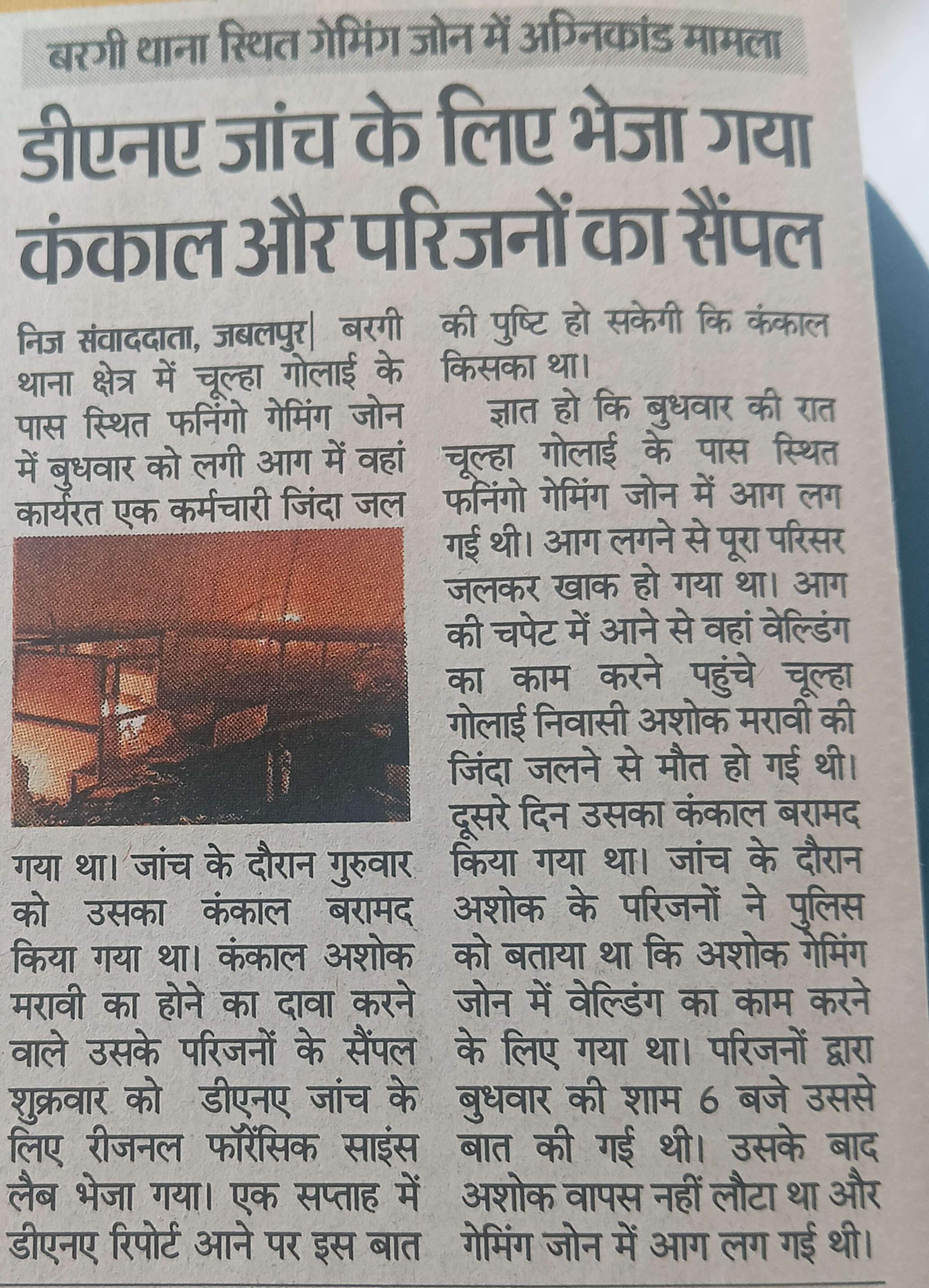 बरगी थाना स्थित गोमिंगो जोन में अग्निकांड मामला