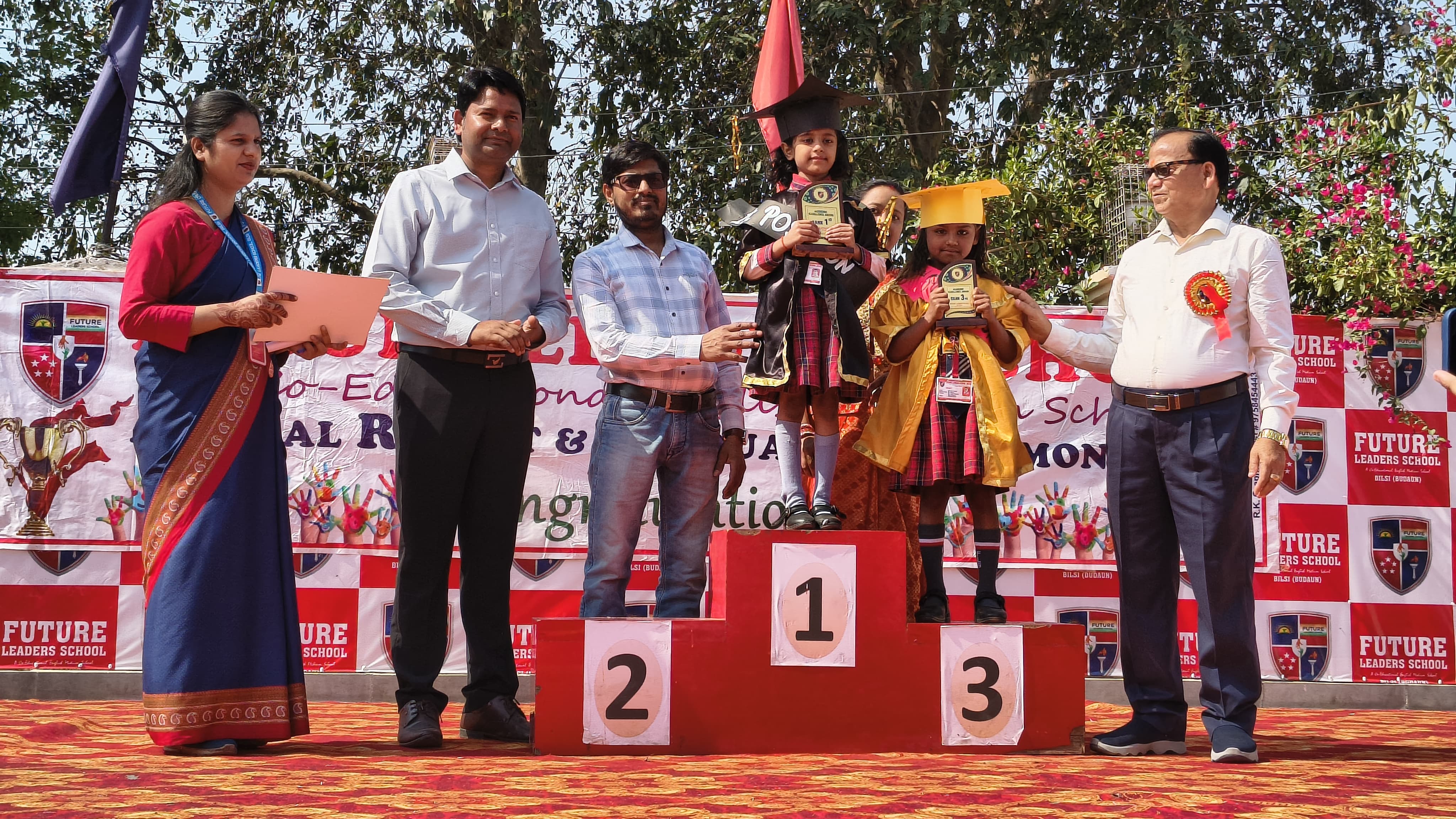 एन सी अब्दुल एवं वैष्णवी (प्रथम), अविका पाल एवं अन्वी भारद्वाज (द्वितीय), आराध्या एवं मिष्ठी राघव (तृतीय) केजी से अनाया मिश्रा एवं टिया (प्रथम), माधव, सूर्यांश एवं सावी (द्वितीय), राधाकृष्ण, काव्यांश, देवांश एवं दृष्टि (तृतीय) कक्षा 1 से दीपक शाक्य, कुंज वार्ष्णेय एवं प्रयाग भारद्वाज (प्रथम), अभिराज यादव, पायल राठौर एवं काव्यांश (द्वितीय), अन्वी तोमर, आजम एवं हर्ष (तृतीय)