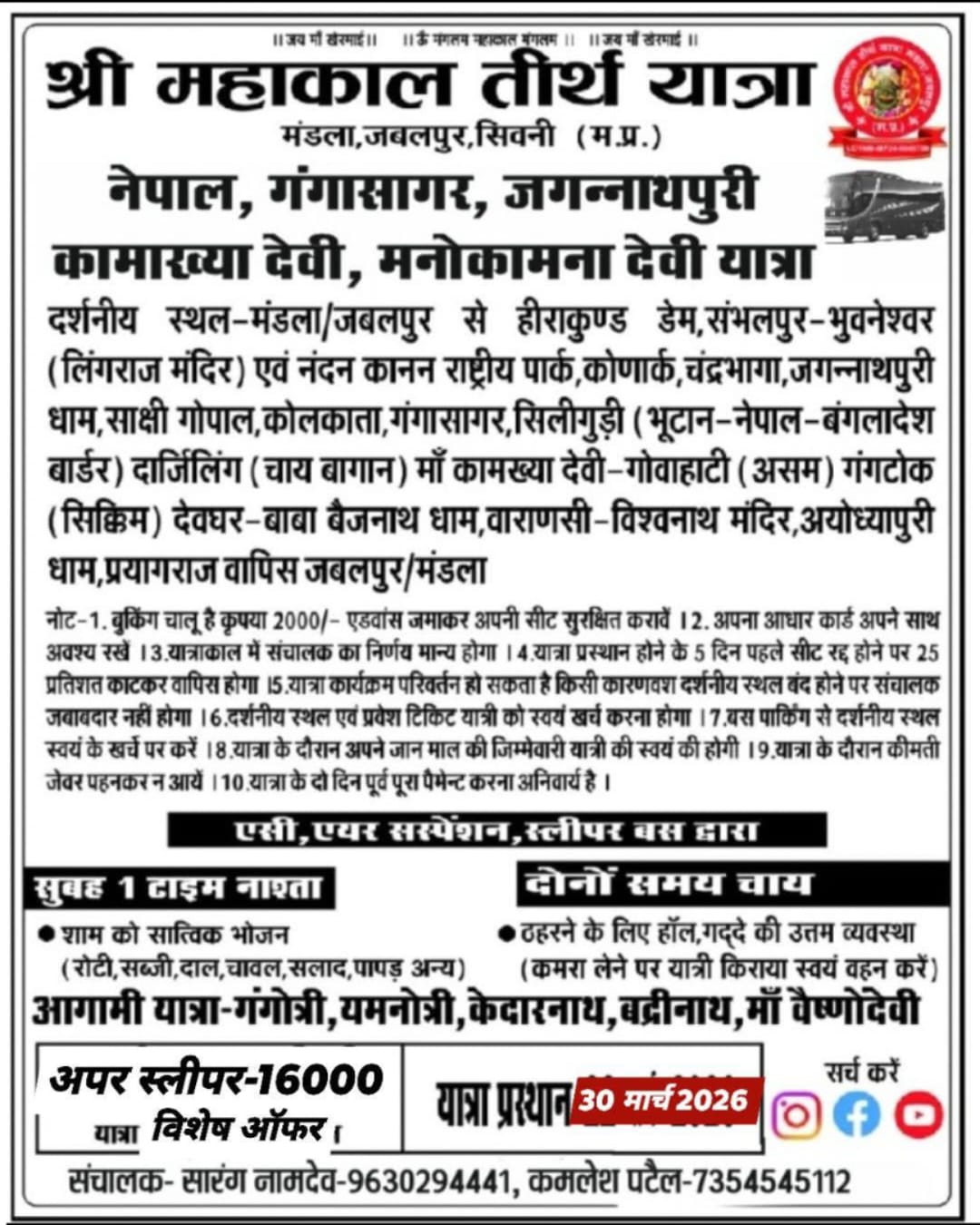 छिंदवाड़ा जिला मुख्यालय से 20 किलोमीटर दूर ग्राम साहब के पास जटामा में मालखेड़ा पति की पूजा अर्चना एवं बारिया परिवार की ओर से धार्मिक जागरण कार्यक्रम आयोजित किया गया है ग्राम की सरपंच रेखा डेहरिया ने बताया है की मां सरस्वती जो की ग्राम खटाना में स्थित है माता रानी की कृपा एवं आशीर्वाद से देवी जागरण का भाव कार्यक्रम एवं मां देवी की स्तुति एवं भंडारे विशाल कार्यक्रम रखा गया है आप ग्रामीण रिजल्ट सादर आमंत्रित है