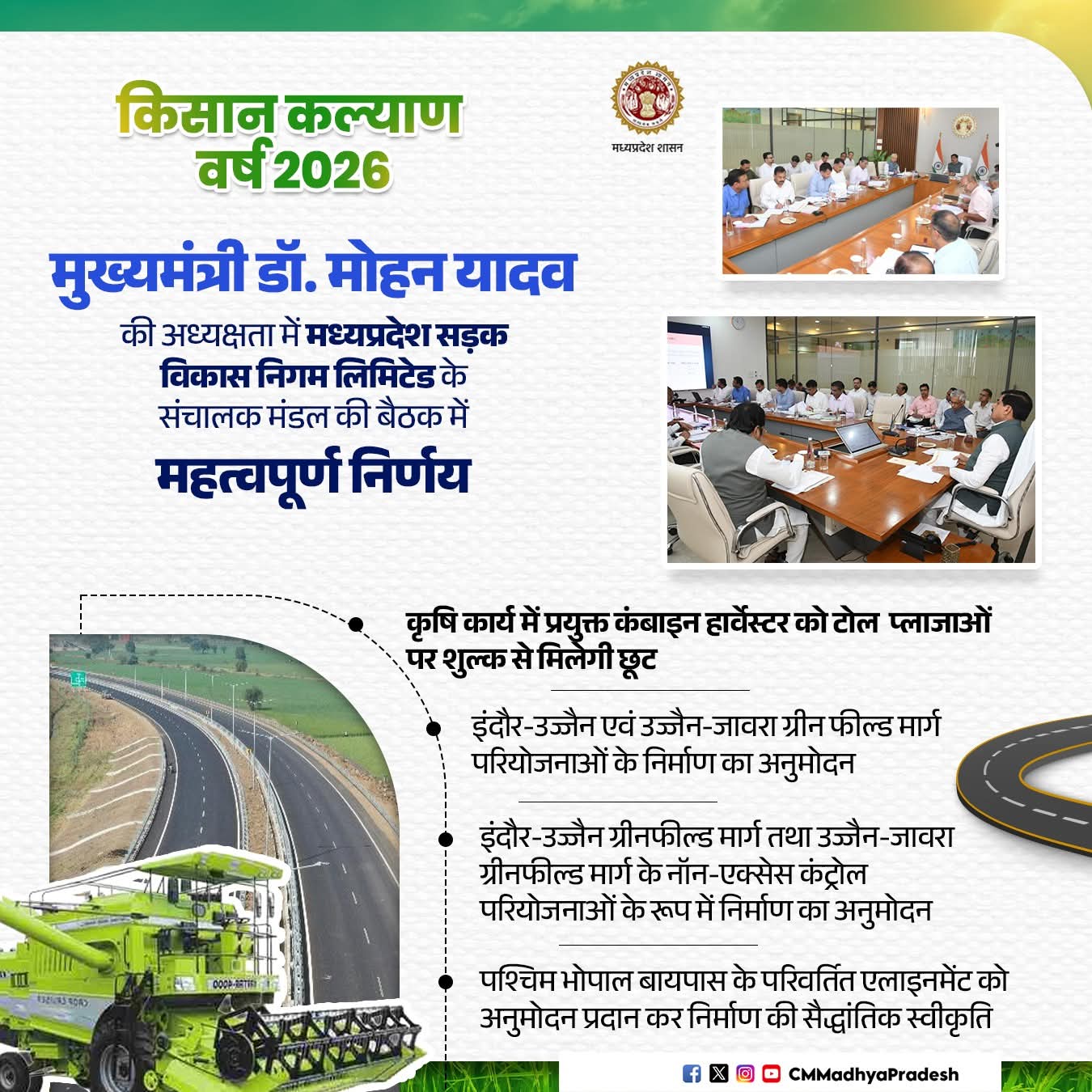 मुख्यमंत्री डॉ मोहन यादव की अध्यक्षता में मध्यप्रदेश सड़क विकास निगम लिमिटेड के संचालक मंडल की बैठक में महत्वपूर्ण निर्णय