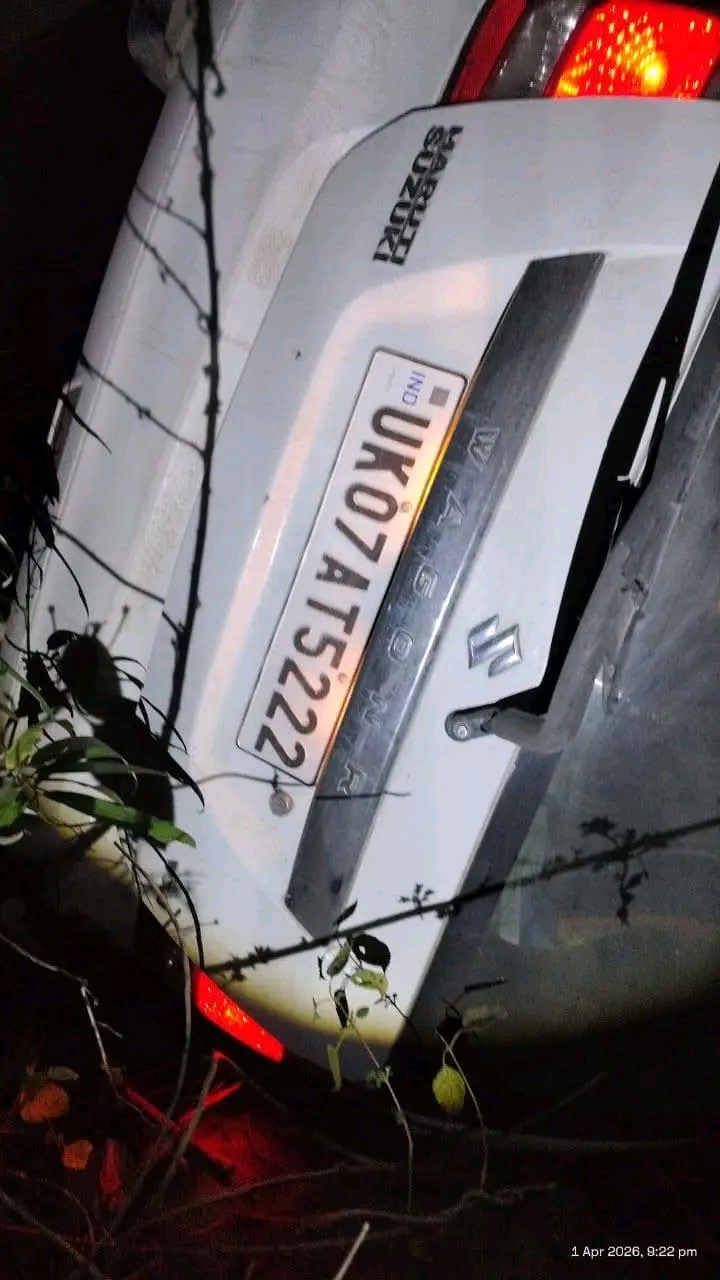 कोटद्वार। प्राप्त जानकारी के अनुसार, दिनांक 01 अप्रैल 2026 की रात करीब 09:00 बजे कोतवाली कोटद्वार अंतर्गत चौकी दुगड्डा को सूचना मिली कि एक कार (UK07-AT5222, वैगनआर) अनियंत्रित होकर सड़क से नीचे खाई में गिर गई है।