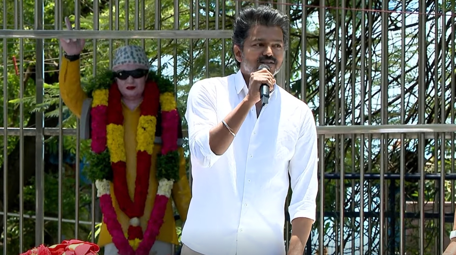02/04/2026 திருச்சி கிழக்கு சட்டமன்ற தொகுதியில் போட்டியிடும் தமிழக வெற்றி கழக தலைவர் திரு விஜய் அவர்கள் தன்னுடைய தேர்தல் பரப்புரைப்புக்கு முன்பு மறைந்த தமிழக முதல்வர் எம்ஜிஆர் அவர்களின் திருவுருவச் சிலைக்கு மாலை அணிவித்து மரியாதை செலுத்தினார் . அதனைத் தொடர்ந்து பொதுமக்கள் மத்தியில் தேர்தல் பரப்புரையாற்றினார்.