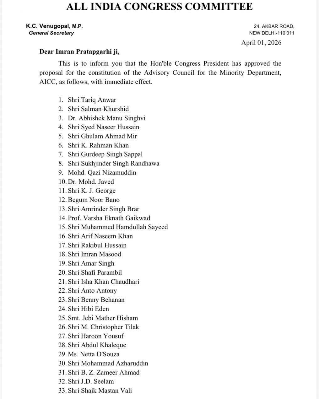 उन्होंने कहा कि यह काउंसिल अल्पसंख्यक समुदायों के मुद्दों को प्रभावी ढंग से उठाने और संगठन की प्रतिबद्धता को मजबूत करने का महत्वपूर्ण मंच बनेगी।