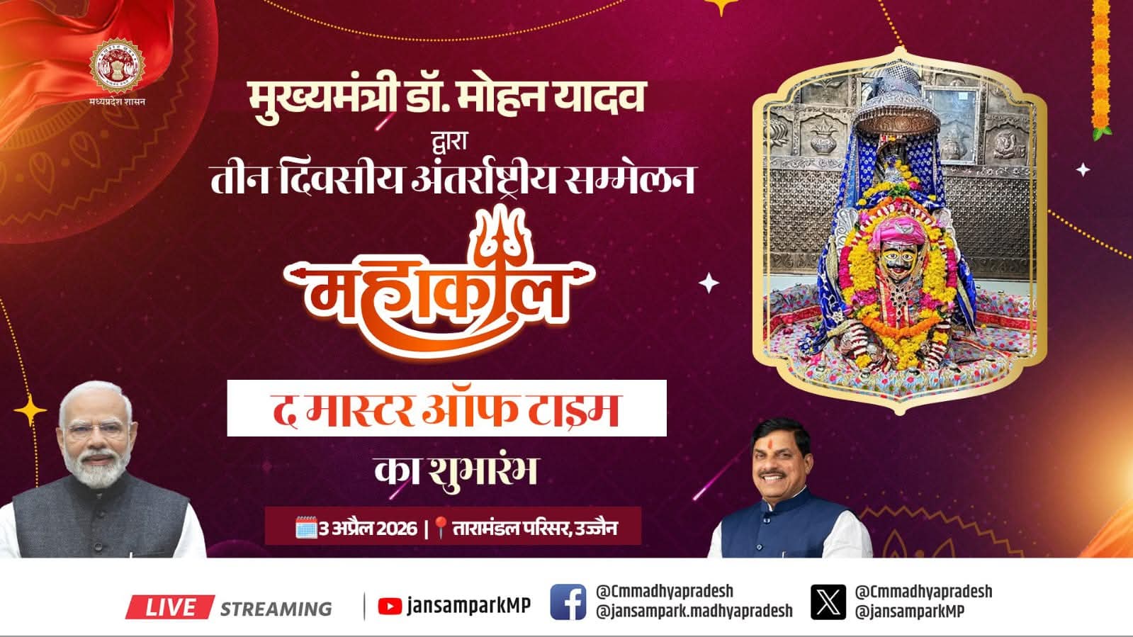 मुख्यमंत्री डॉ मोहन यादव द्वारा तीन दिवसीय अंतर्राष्ट्रीय सम्मेलन महाकाल द मास्टर ऑफ टाइम का शुभारंभ