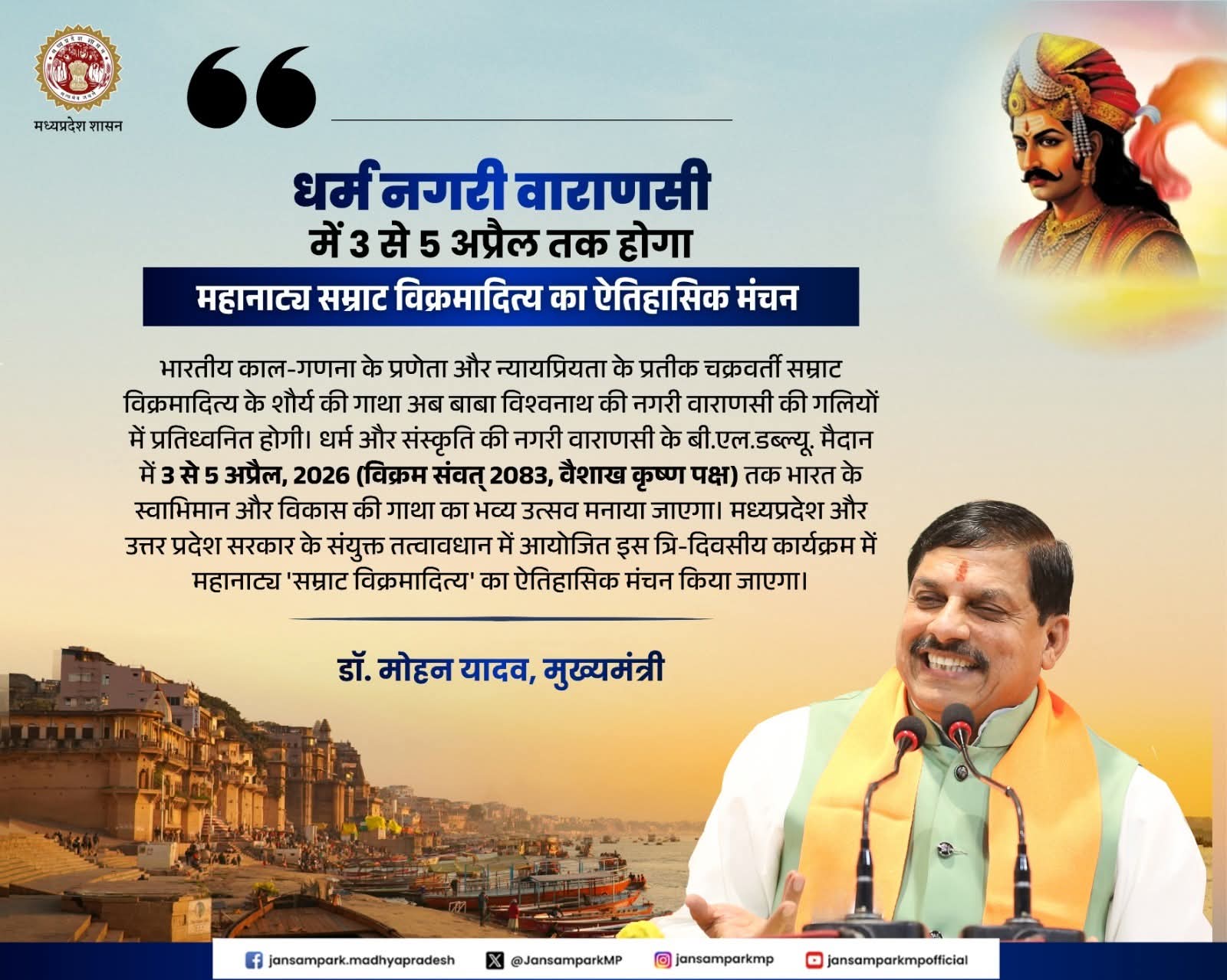 धर्म नगरी वाराणसी में 3 से 5 अप्रैल तक होगा महानाट्य सम्राट विक्रमादित्य का ऐतिहासिक मंचन: मुख्यमंत्री डॉ मोहन यादव