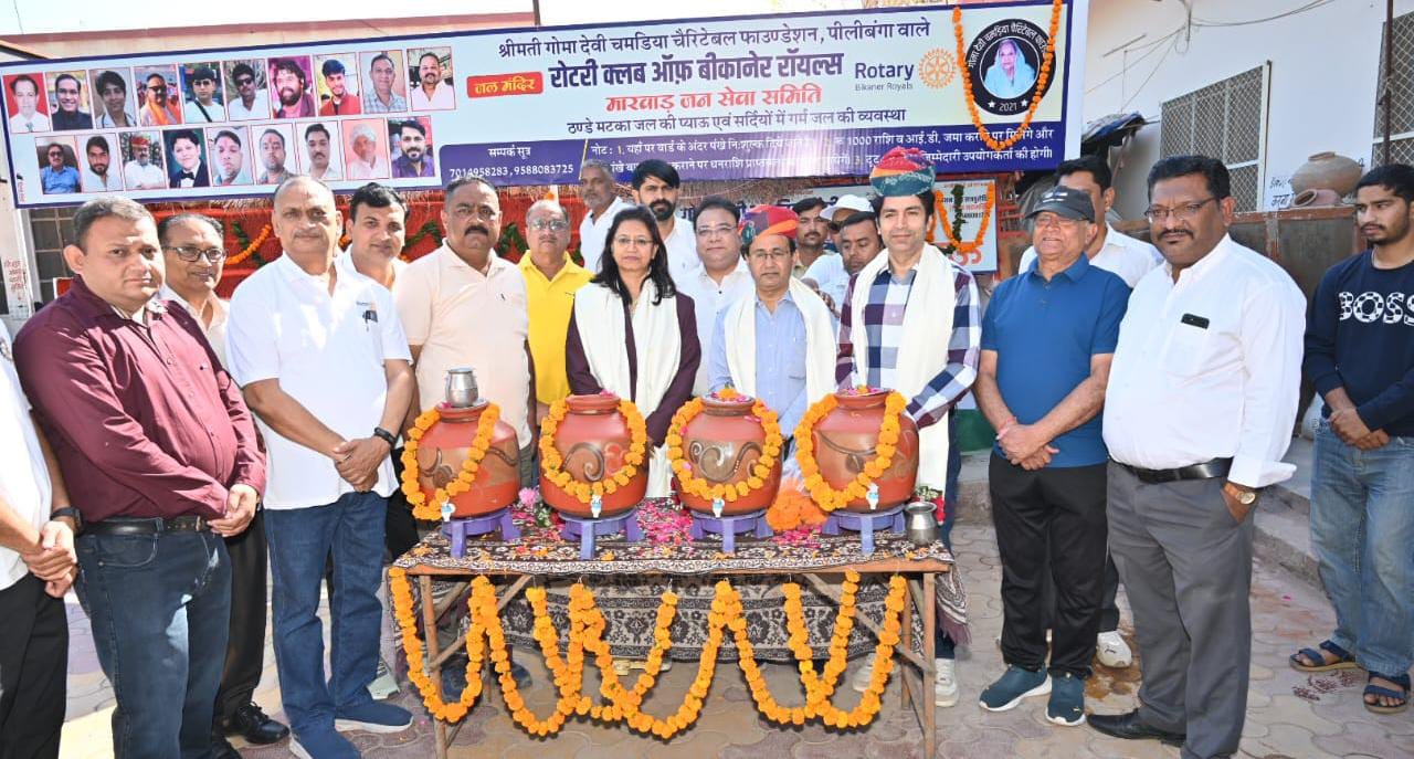 बीकानेर। भीषण गर्मी को देखते हुए आमजन और मरीजों को राहत प्रदान करने के उद्देश्य से रविवार को मारवाड़ जन सेवा समिति, गोमा देवी चमड़ियां ट्रस्ट एवं रोटरी क्लब रॉयल्स के संयुक्त तत्वावधान में जनाना अस्पताल पीबीएम में ठंडे मटके के पानी का प्याऊ शुरू किया गया।
