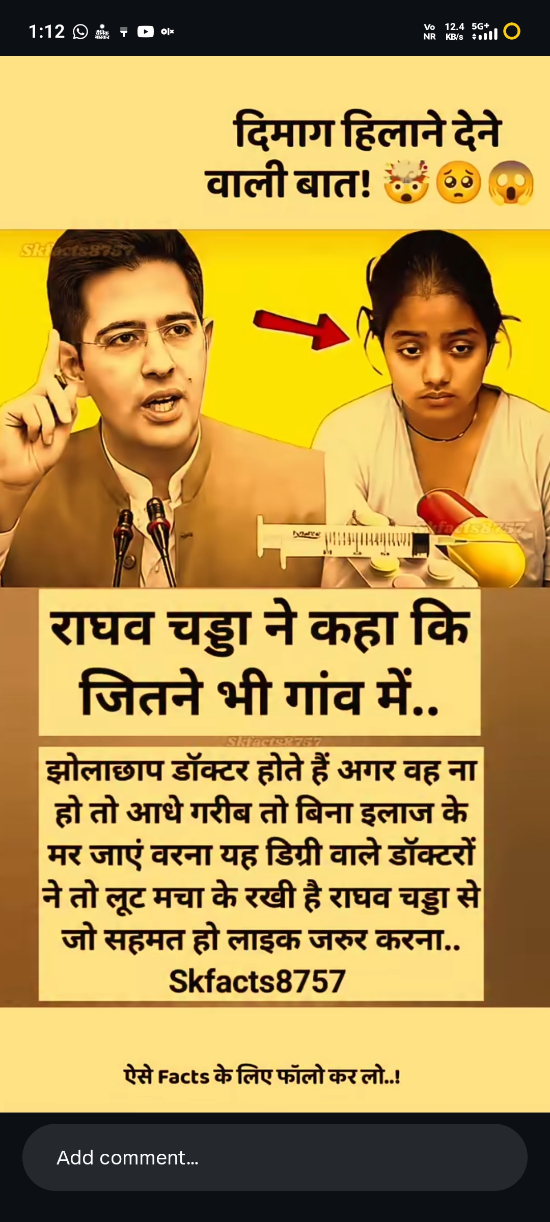 Raghav Chadda Ne kaha ek number Ki baat hi profile doctor to high fees bhi lete Hain aur dusri baat kabhi time se nahin aate baithte Hain line lagao fees katwao tab tak to Jaan Chali jayegi to Inka hona bhi jaruri hai🫶🙏🫶🤔